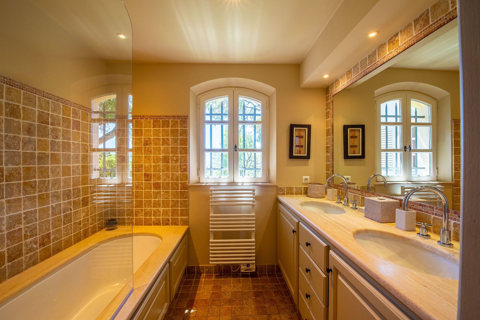 On the main floor and the n-1, are distributed 5 bedrooms, all in suites and air-conditioned. The master bedroom will be the highlight of this villa, also having its own bathroom and dressing room.