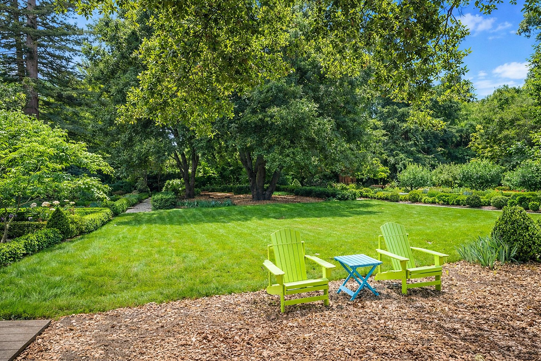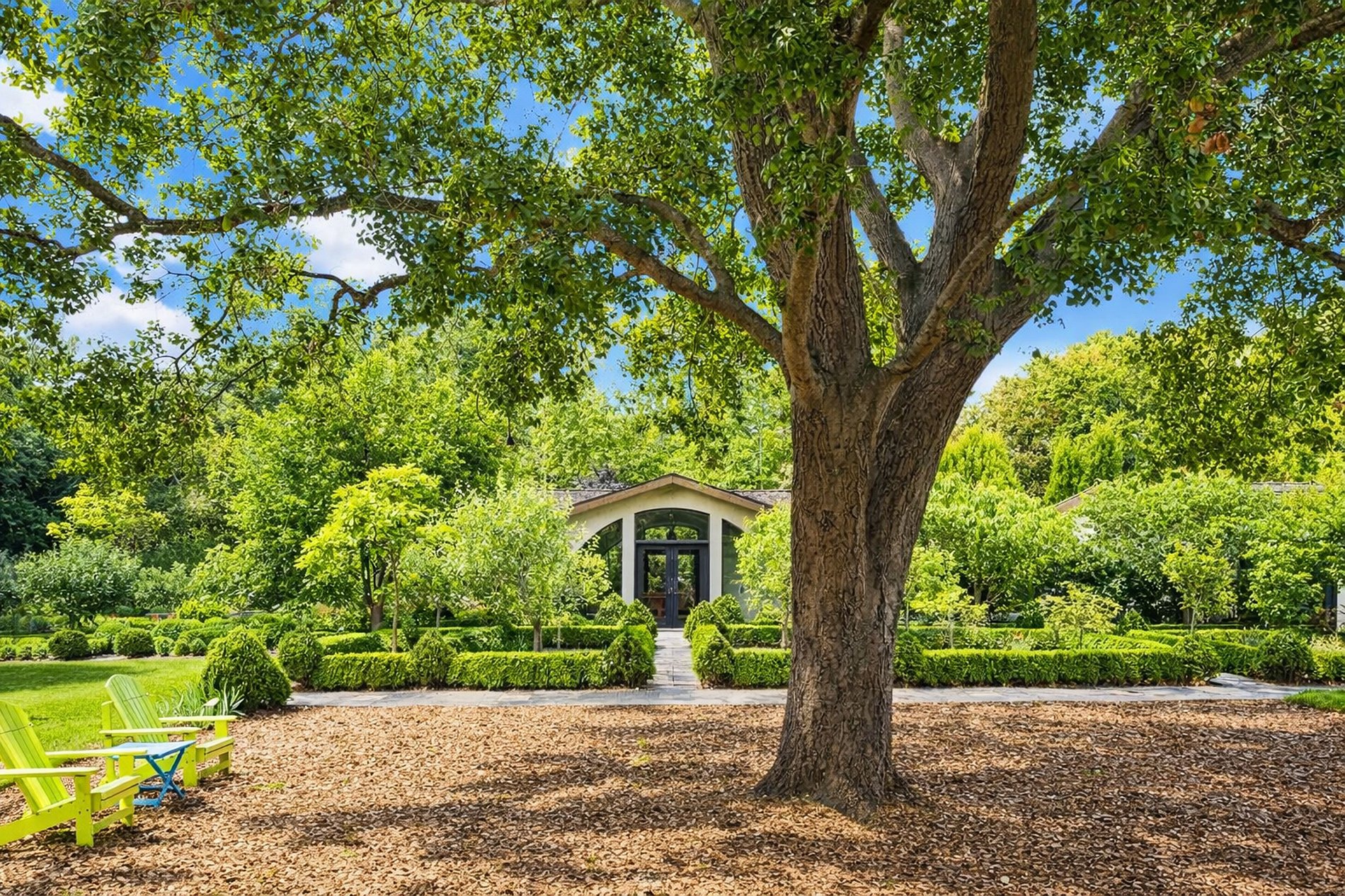 Surrounded by heritage oak trees and a tranquil redwood grove, the property enjoys a peaceful, secluded setting while remaining close to San Francisco’s most prestigious enclaves. Manicured gardens, intimate outdoor sitting areas, and a blue-tiled swimming pool create a seamless connection between the home and its natural surroundings.