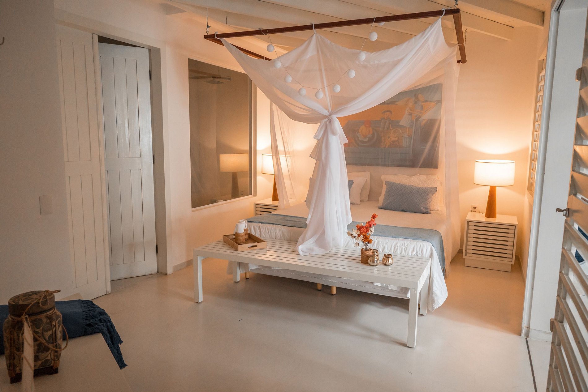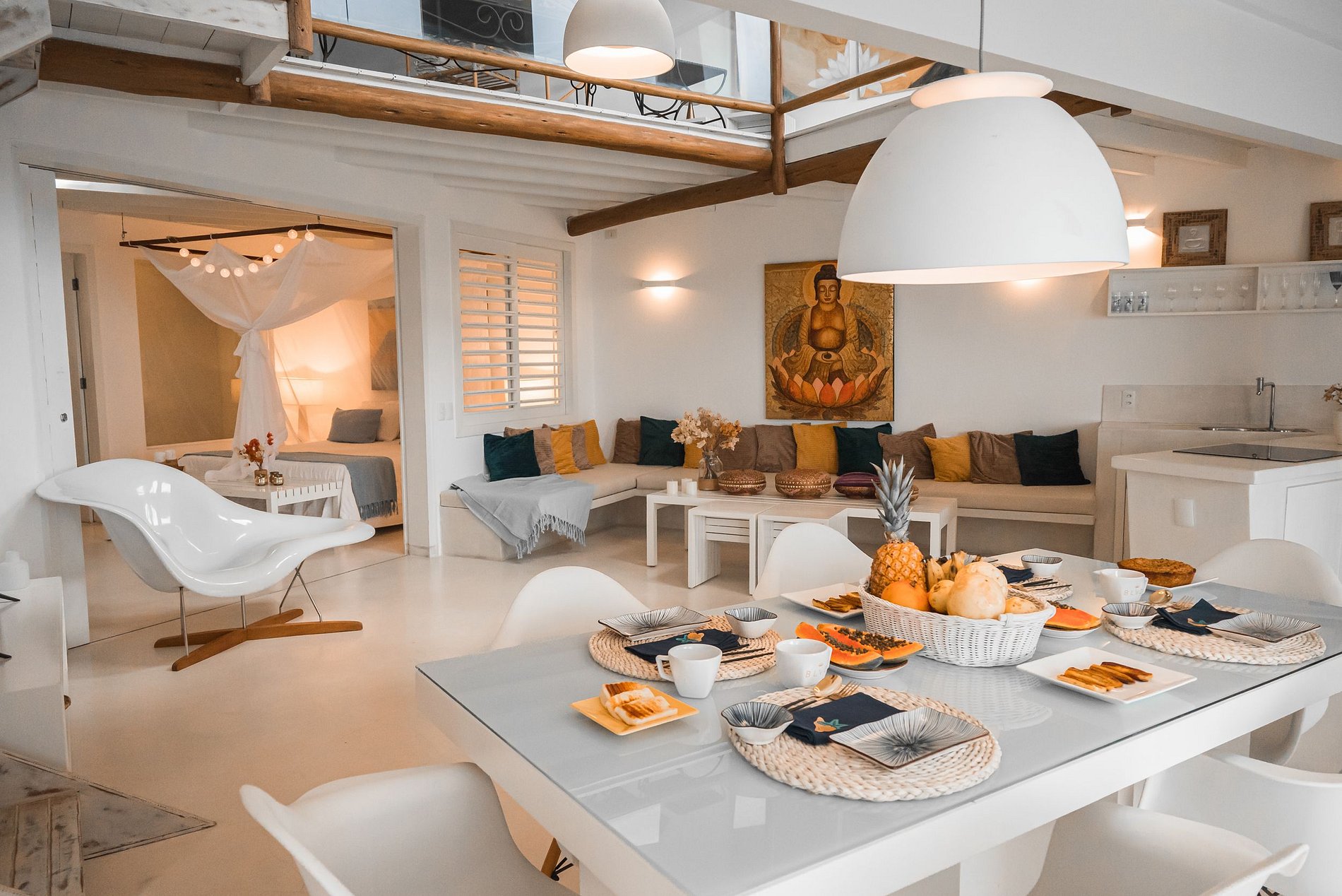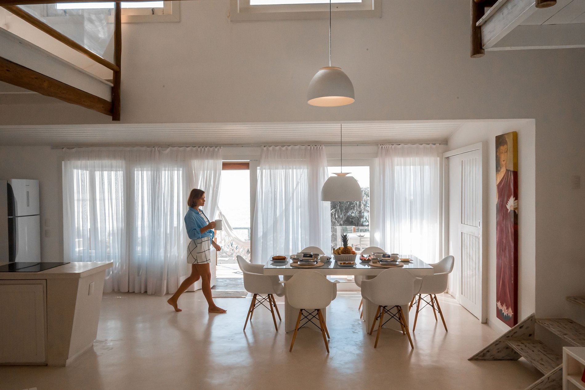 We do not have equipment powered by fossil energy such as gas, diesel or gasoline; Our modern 4-burner electric stove is induction, providing total safety and agility; In the mezzanine suite we offer a bucolic space for contemplating the sea.