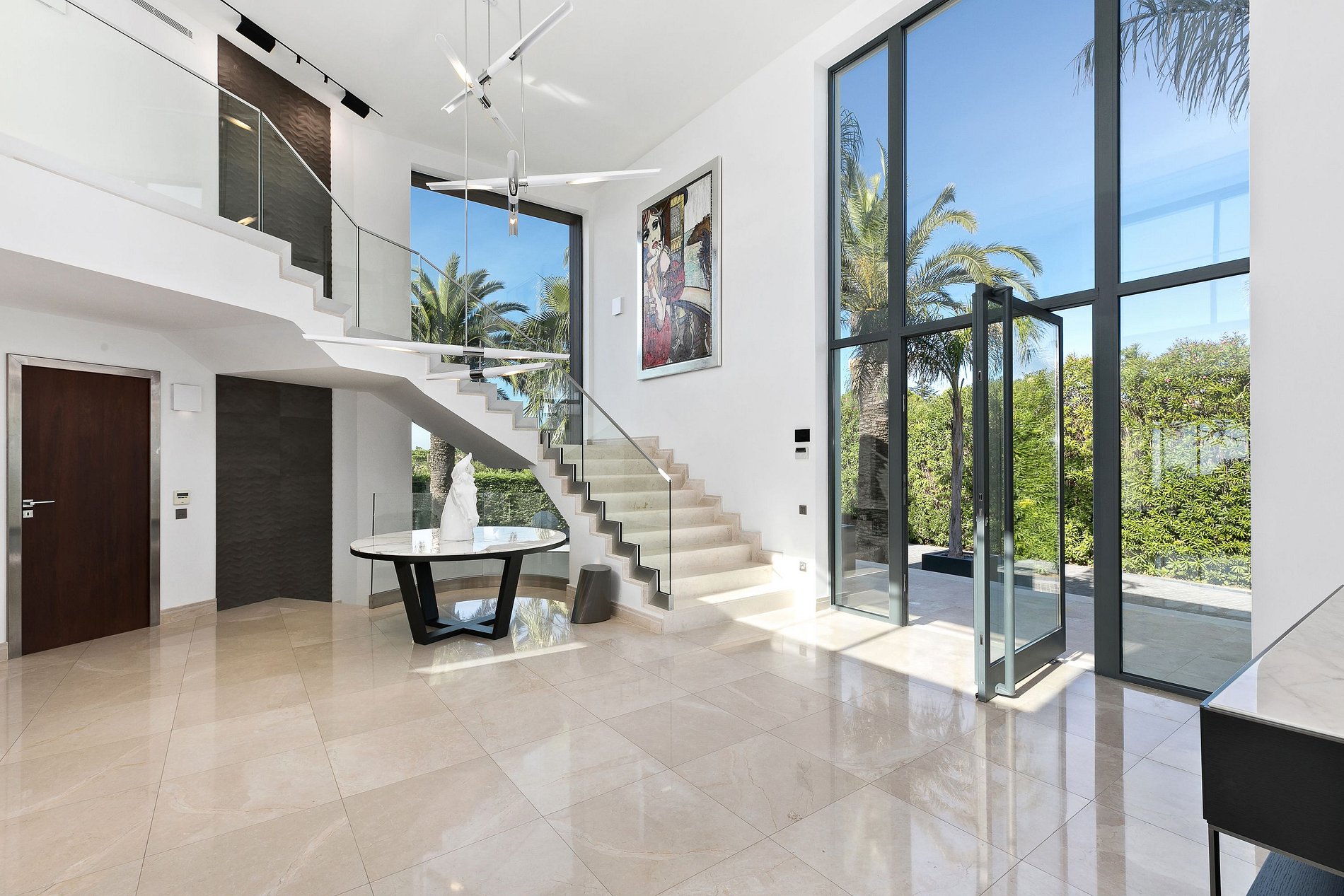 From the moment you enter, generous volumes and expansive floor-to-ceiling windows invite natural light and sea views into every space.