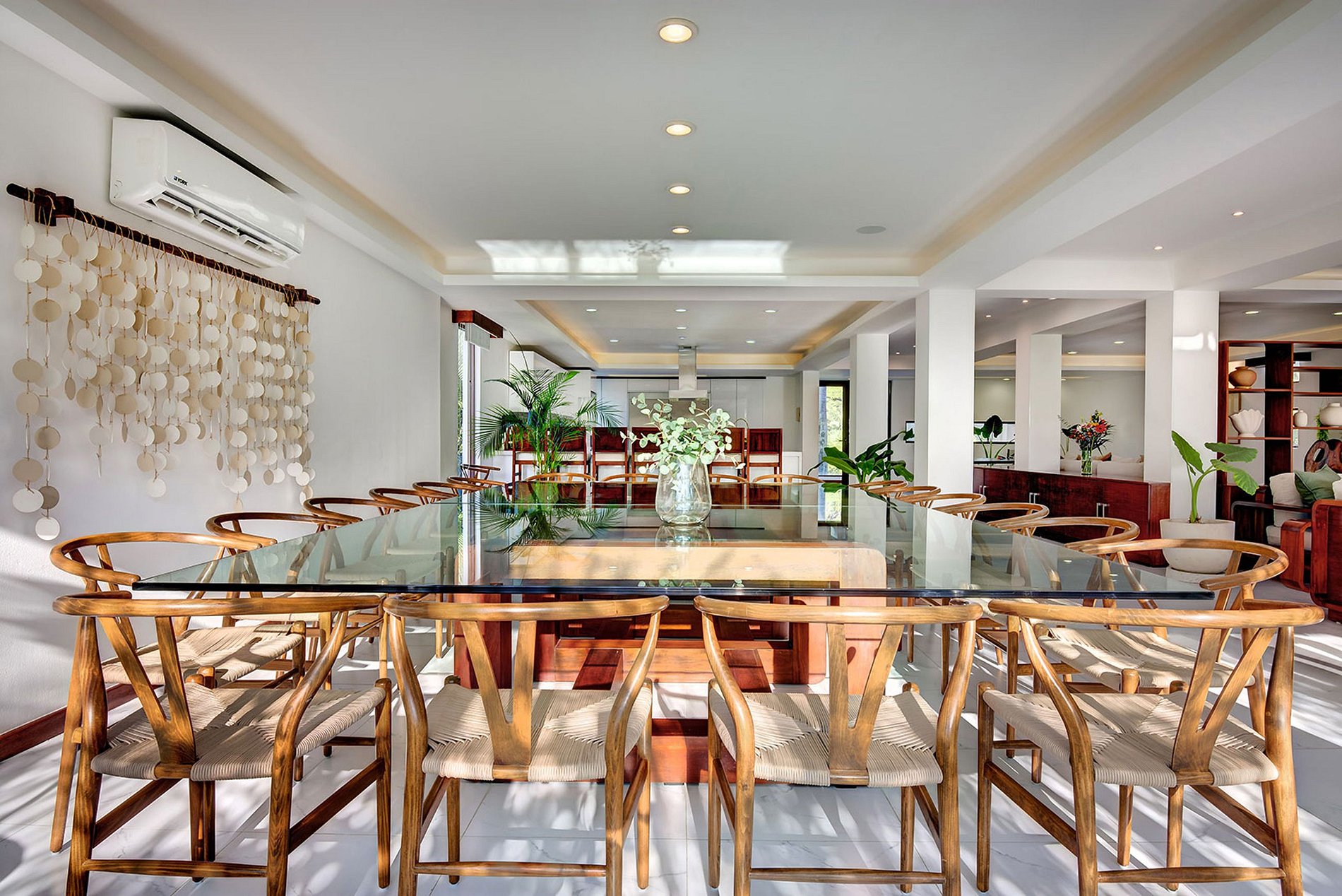 The villa is equipped with two outdoor living and dining areas, one in the bottom level courtyard and the second on top of the roof terrace, which is also equipped with a large infinity plunge pool. These great areas of the home invite you to plan a group event such as an afternoon lunch or an evening BBQ under the starry sky.