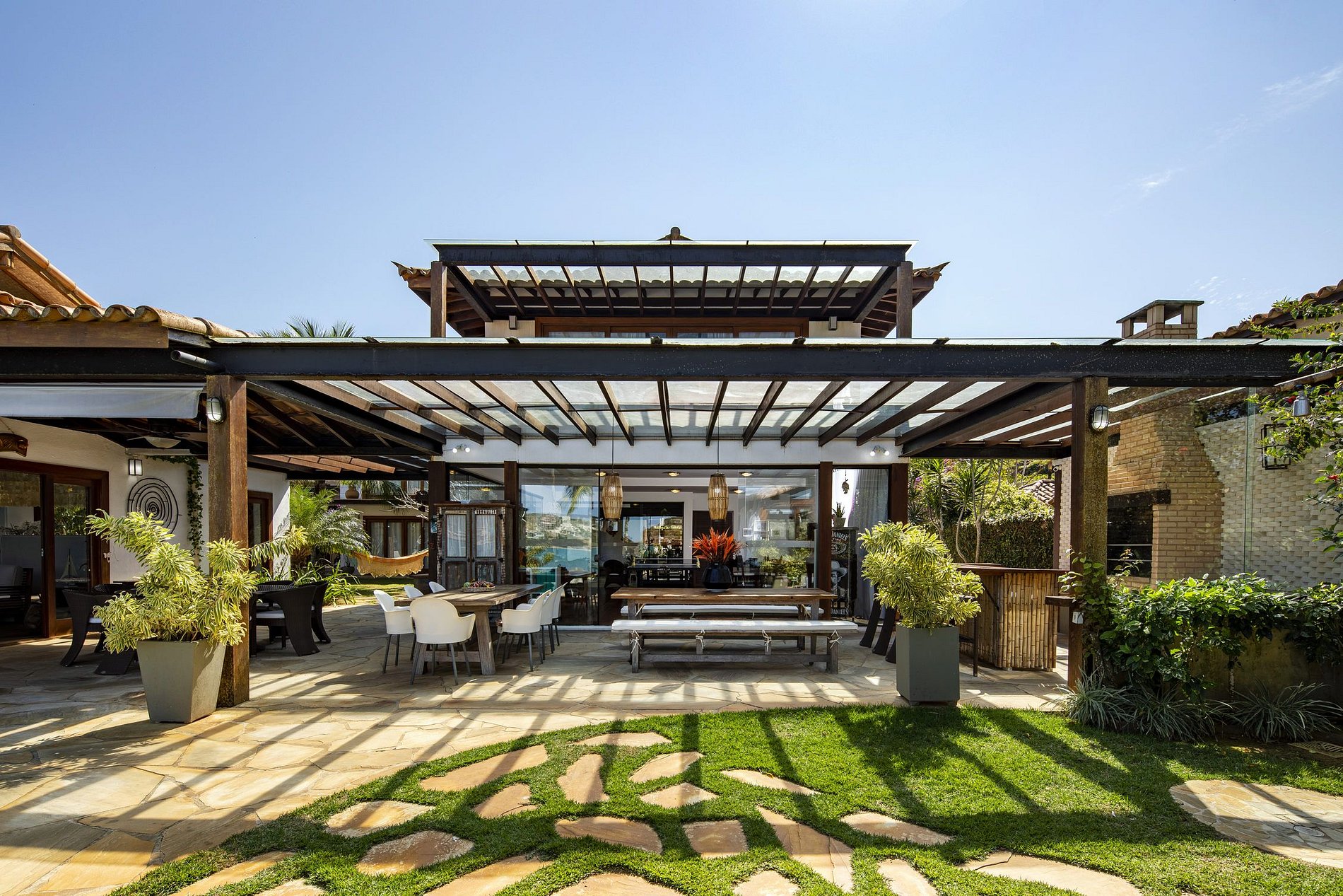 With a beautiful view of the sea of ​​Búzios, this magnificent residence is the ideal refuge for the vacations of your dreams. The wood finish adds rustic air to the spacious rooms decorated with the purest good taste, in a perfect balance between refinement and simplicity.