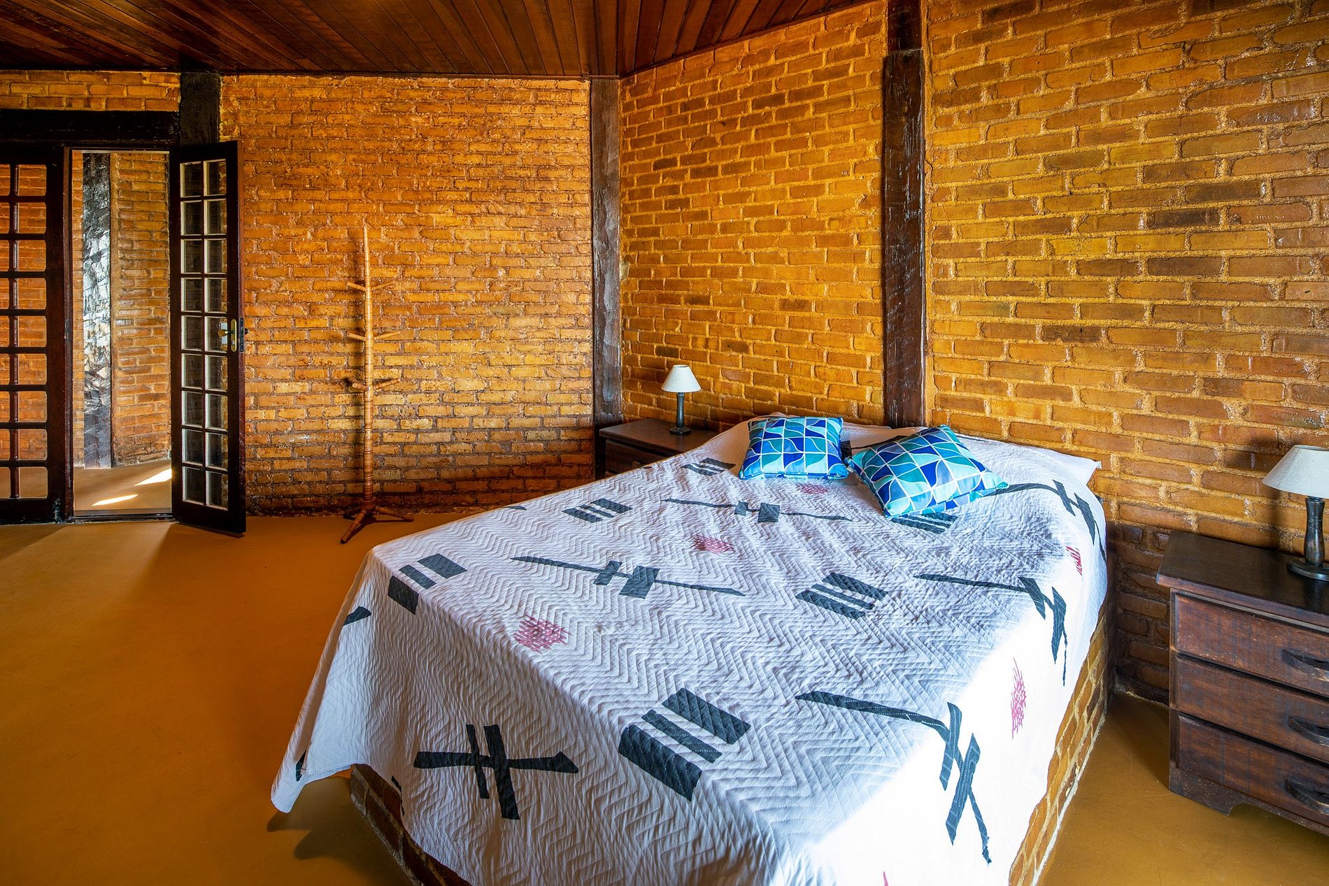 The interior of the main house has a rustic colonial design with high quality solid wood furniture and varnished brick walls.