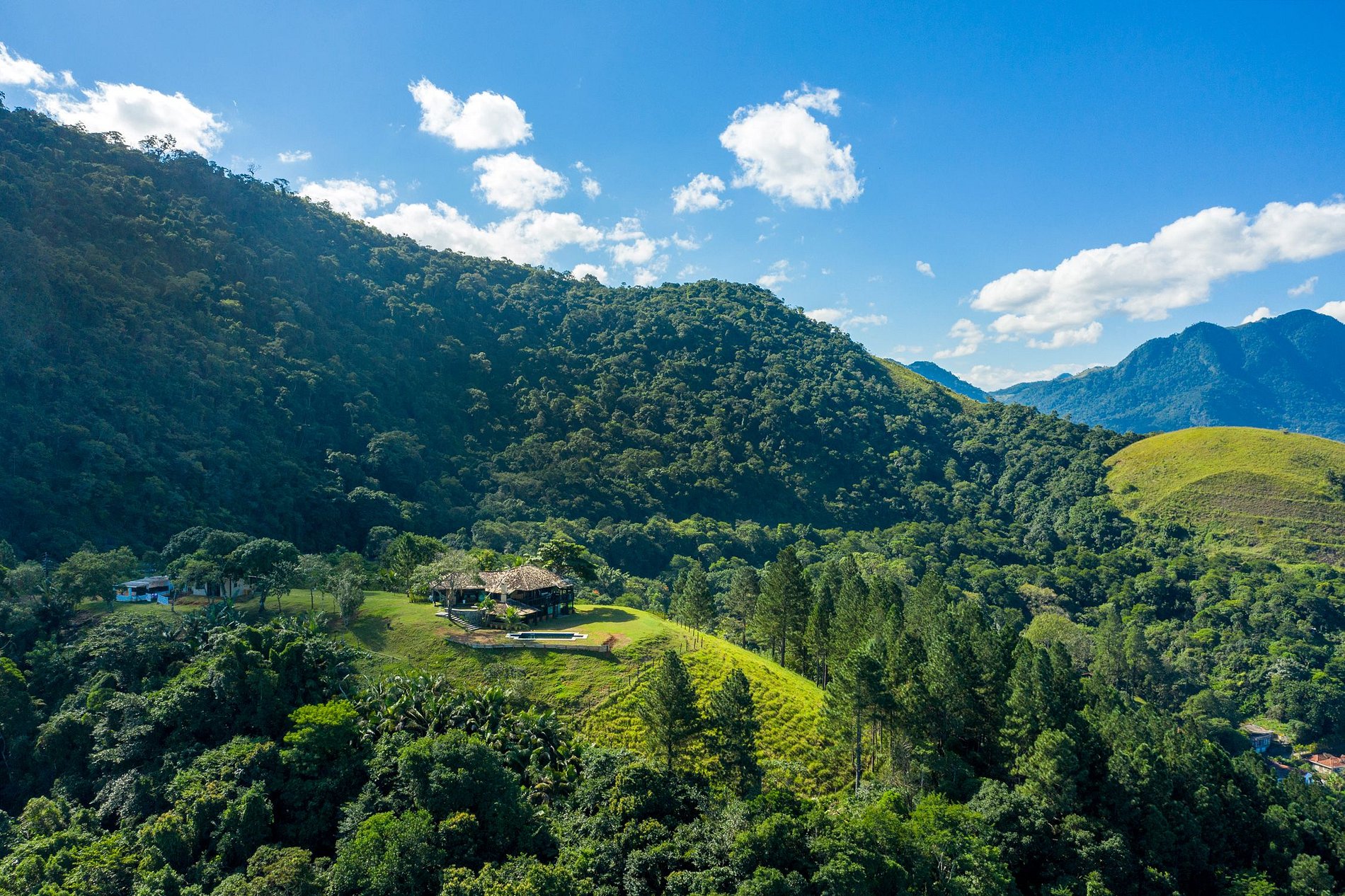 There are 25 thousand square meters of area of the property, mostly covered by a beautiful green garden, surrounded by nature and mountains, providing a breathtaking view.