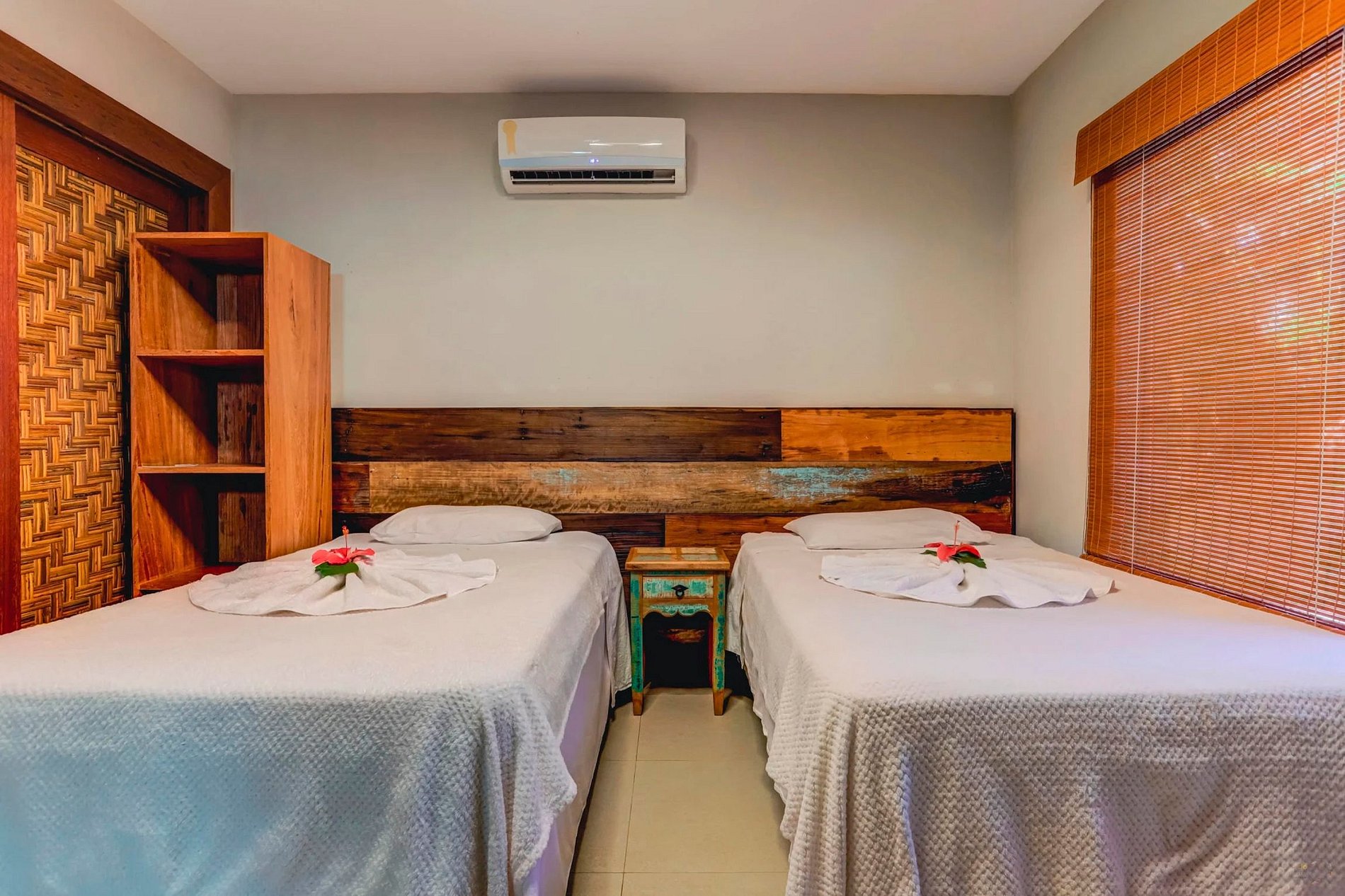 The upper floor with three suites well assembled with: air conditioning, closets, television, lamp. Windows with a green view. And bathroom with closet and hairdryer.