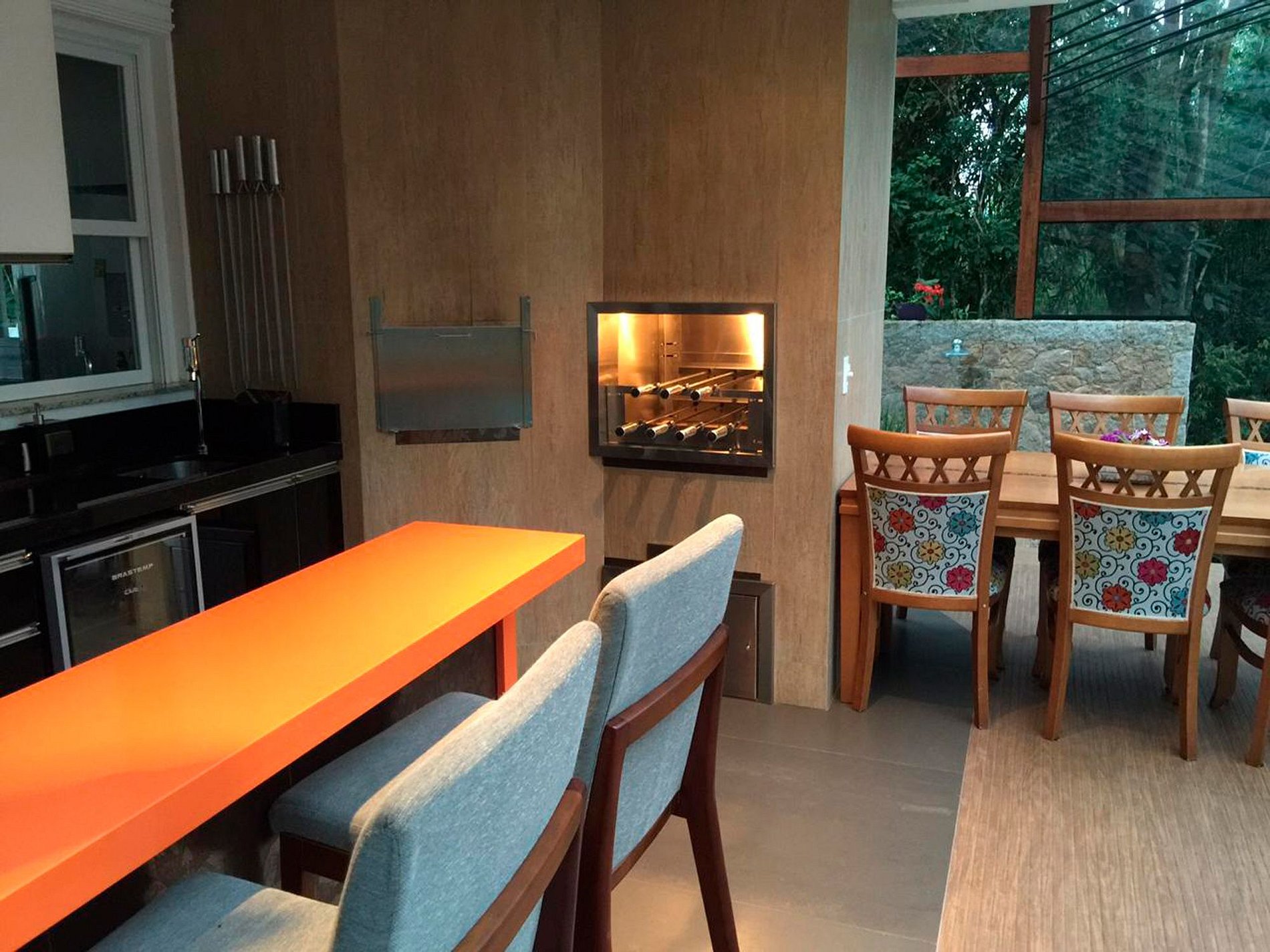 Gourmet area equipped with Rotating Barbecue, wood oven, TV and Home Theater.