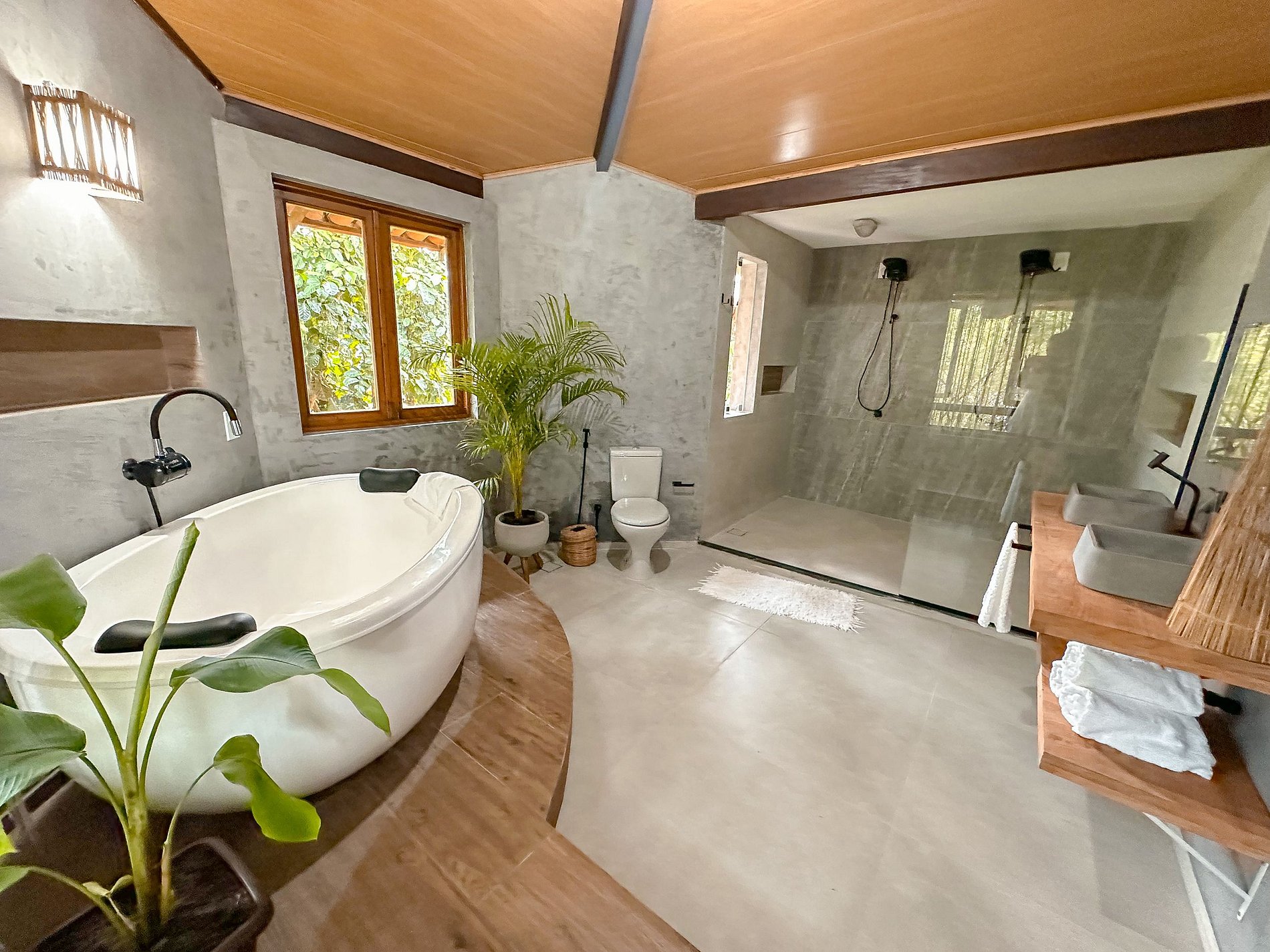There are 6 nice suites with three bathtubs. The house comfortably accommodates 16 people.