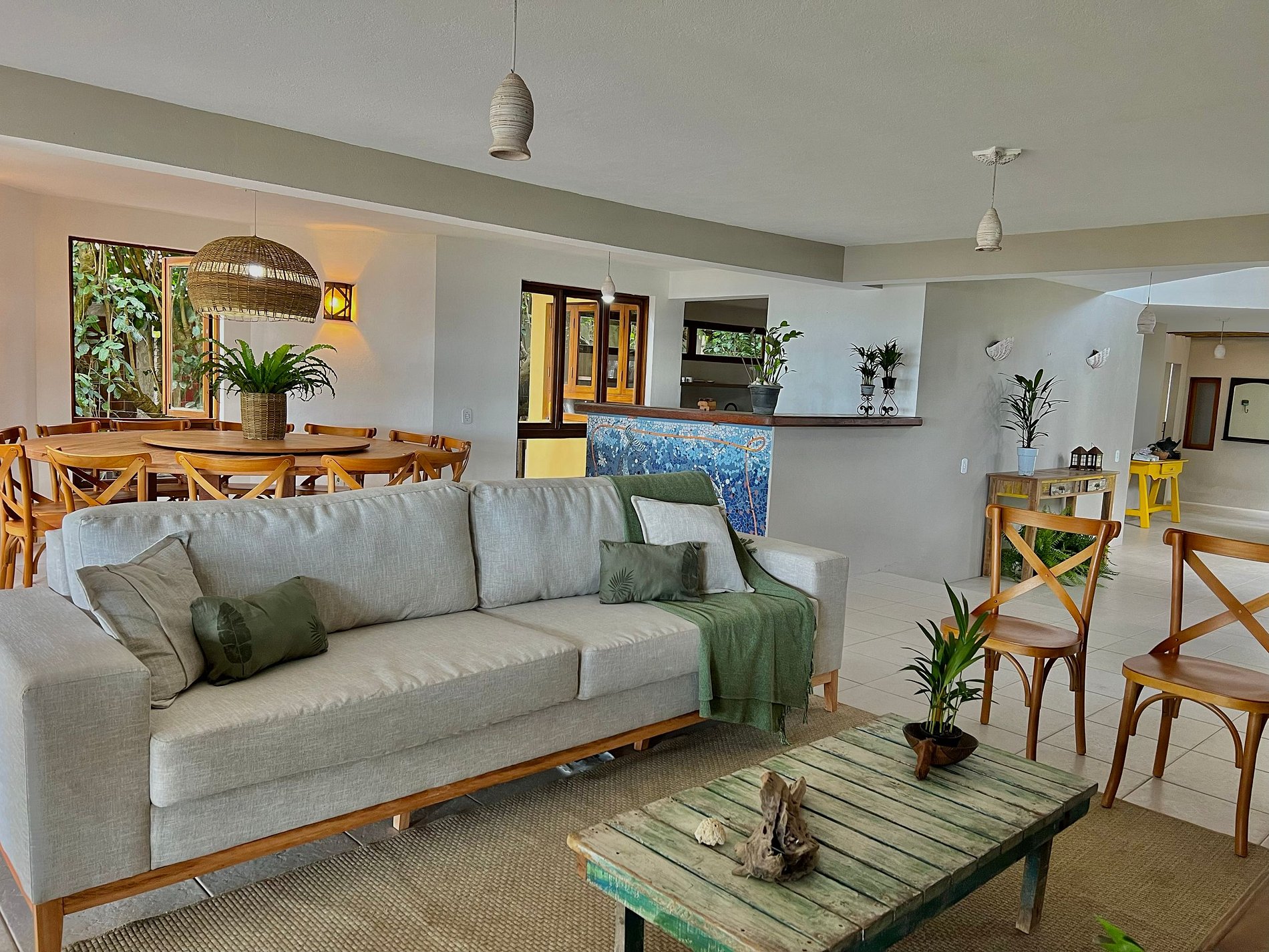 Well harmonized house with large spaces and modern decoration and furniture. Living room with comfortable sofa, smart TV. The round table with 12 chairs has a turntable in the center, excellent for serving meals. The kitchen is complete and has modern finishes.
