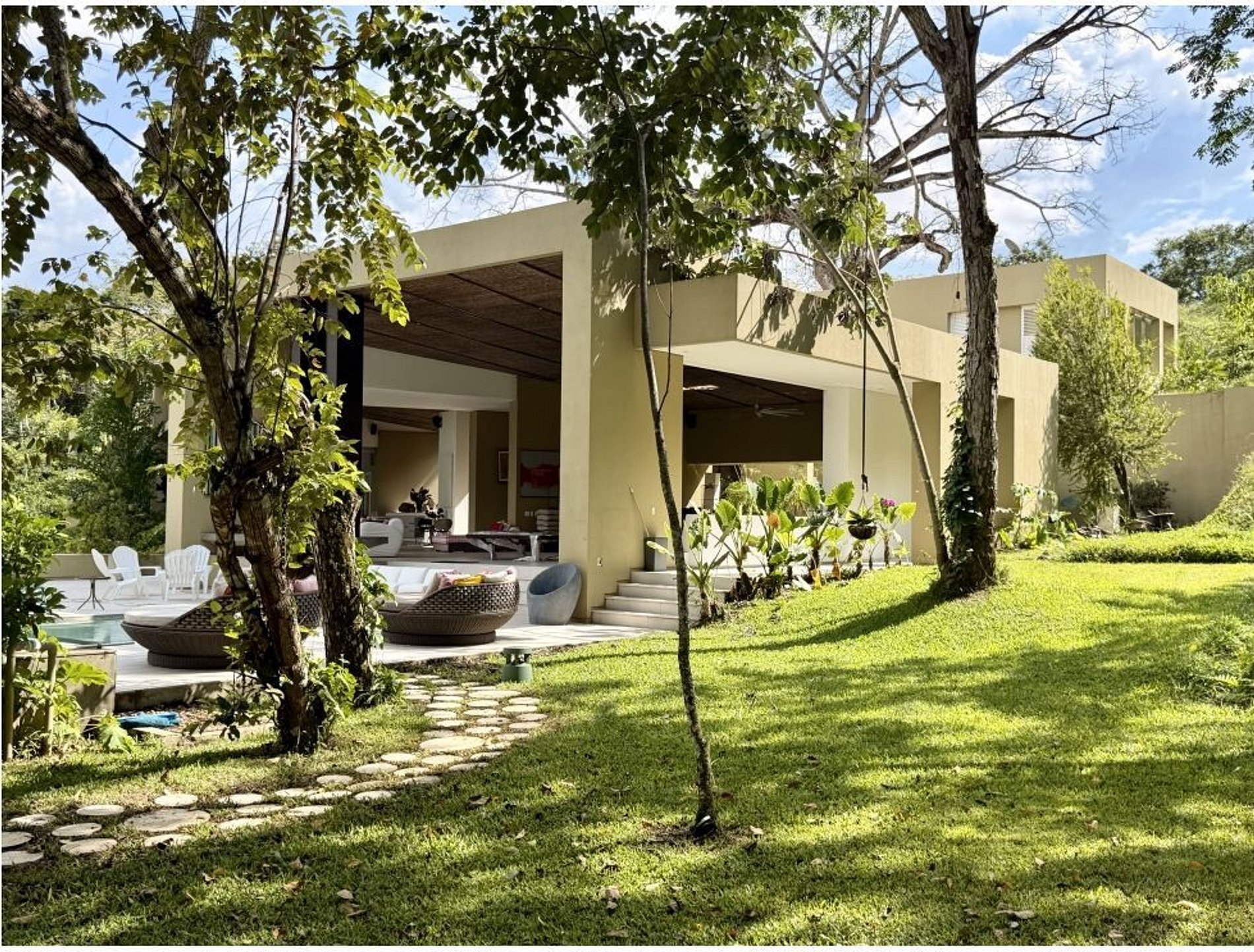 Located in the exclusive Mesa de Yeguas condominium in Anapoima, this modern 5-bedroom residence offers 600 sqm of built area set on a spacious, lush green lot surrounded by nature. Designed for comfort and seamless indoor-outdoor living, the property combines contemporary architecture with open, light-filled social spaces.