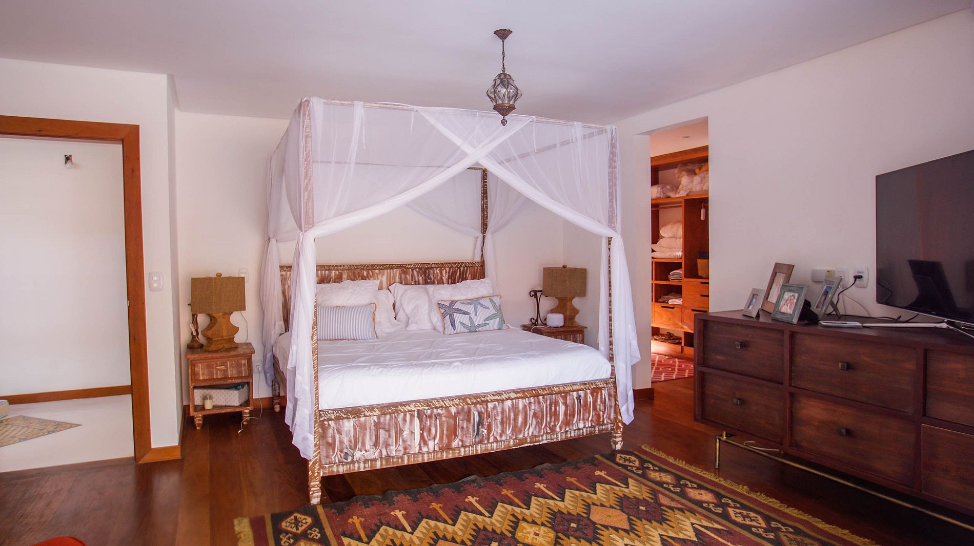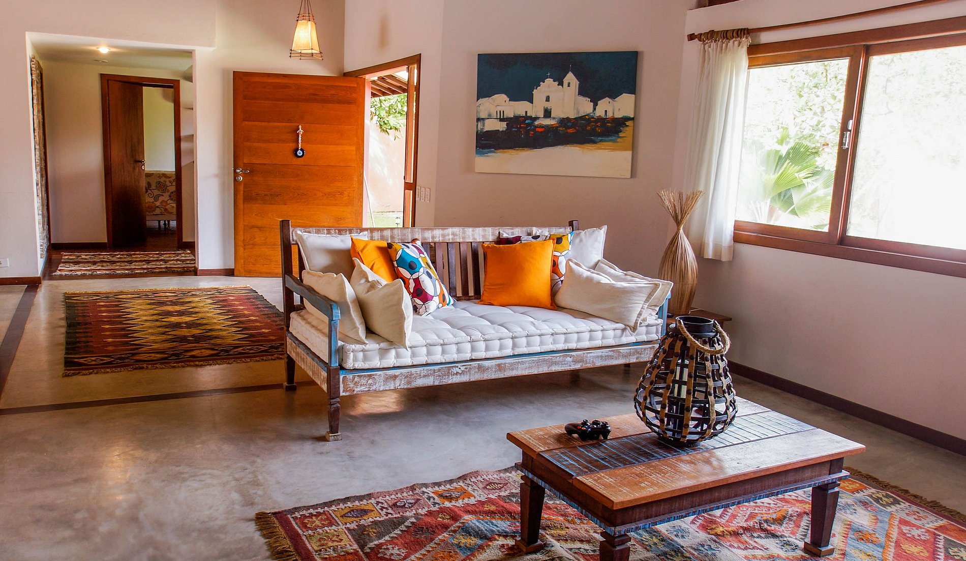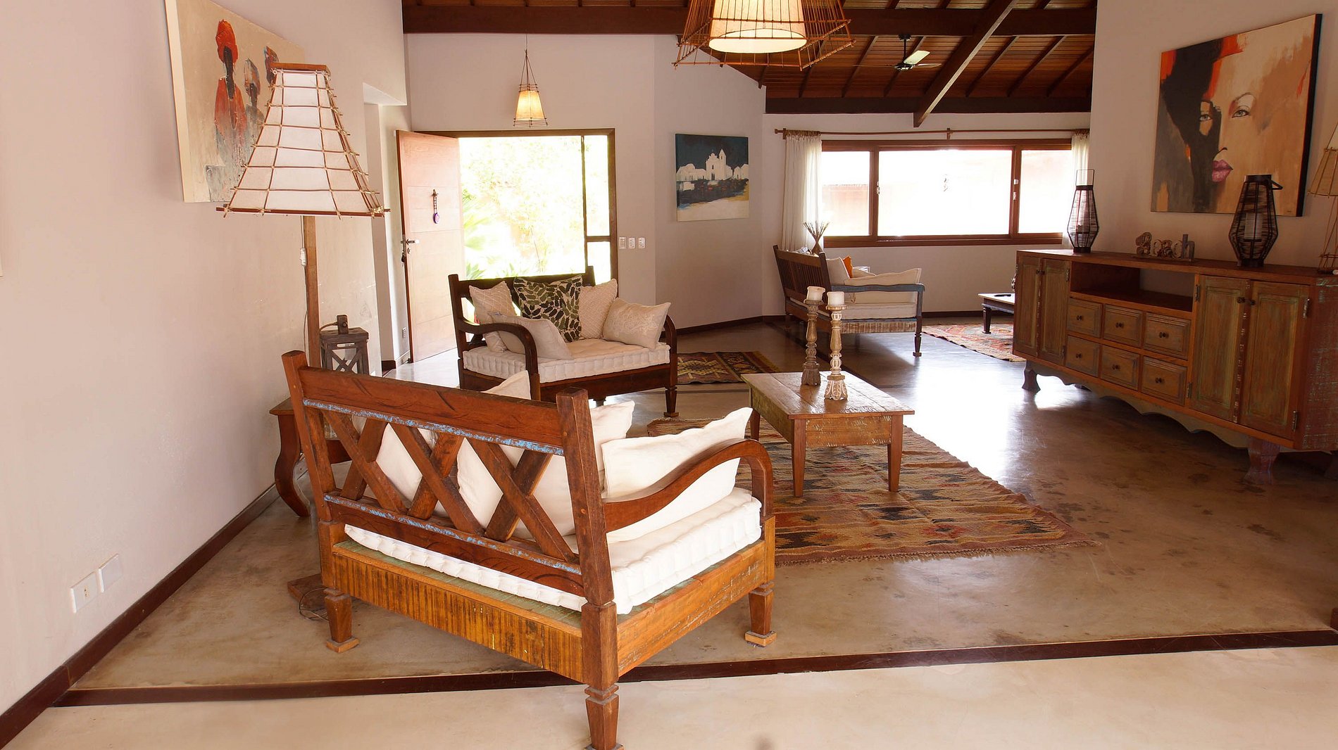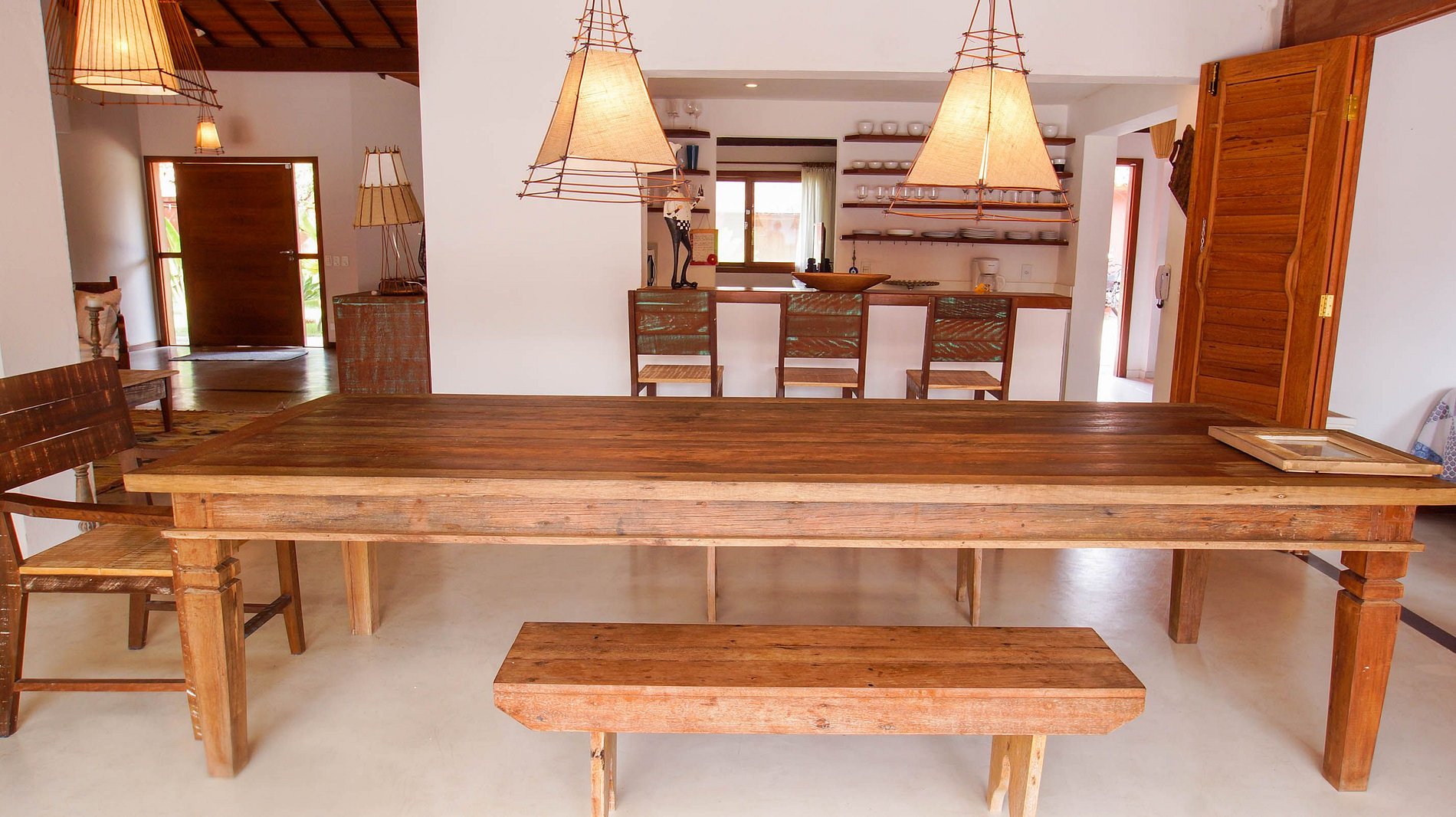 The villa is located in Quintas do Arraial. Residential neighborhood, tree-lined, quiet and with dirt streets. The house is 600 meters from the beach, a quiet walk to the white sand beach, without waves and with natural pools. It is also a 15-minute walk from the center of Arraial D´Ajuda, or 5 minutes by car.