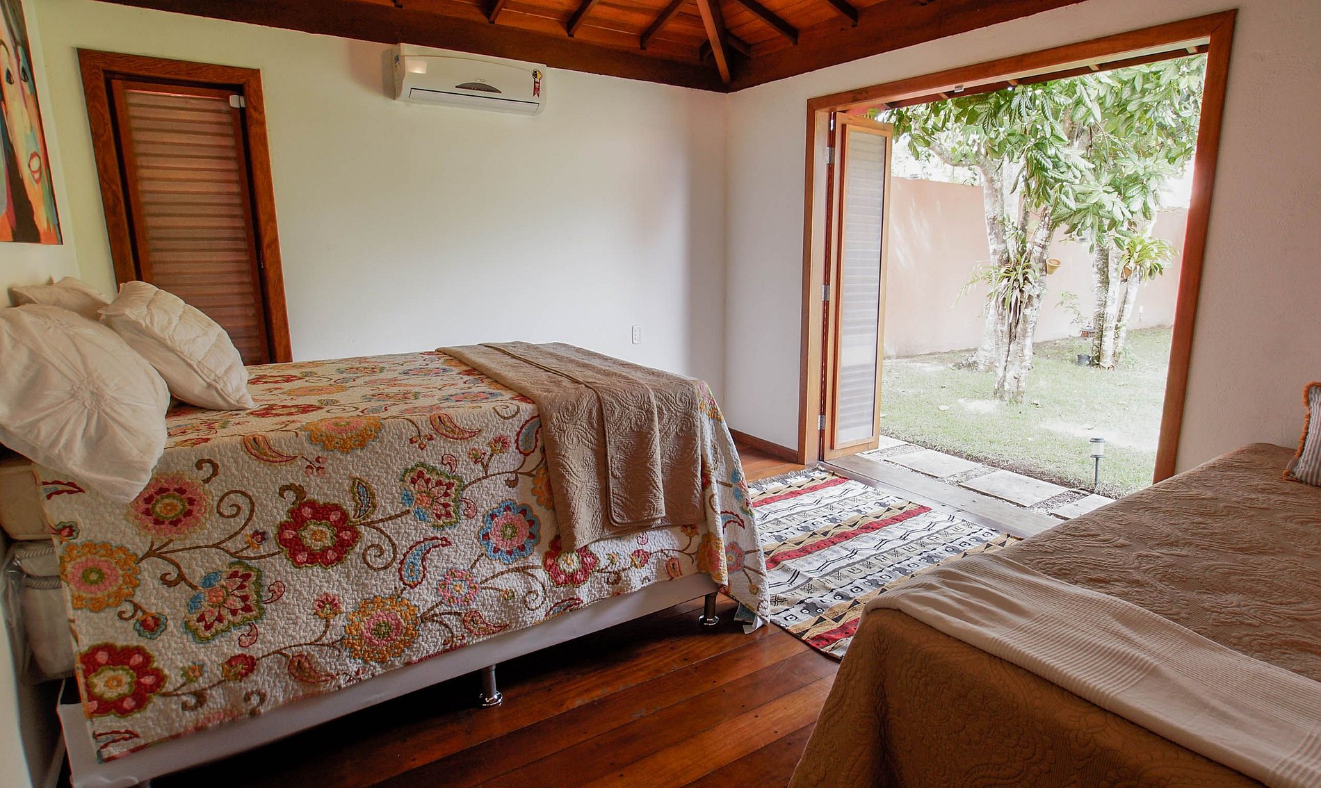 The villa is located in Quintas do Arraial. Residential neighborhood, tree-lined, quiet and with dirt streets. The house is 600 meters from the beach, a quiet walk to the white sand beach, without waves and with natural pools. It is also a 15-minute walk from the center of Arraial D´Ajuda, or 5 minutes by car.
