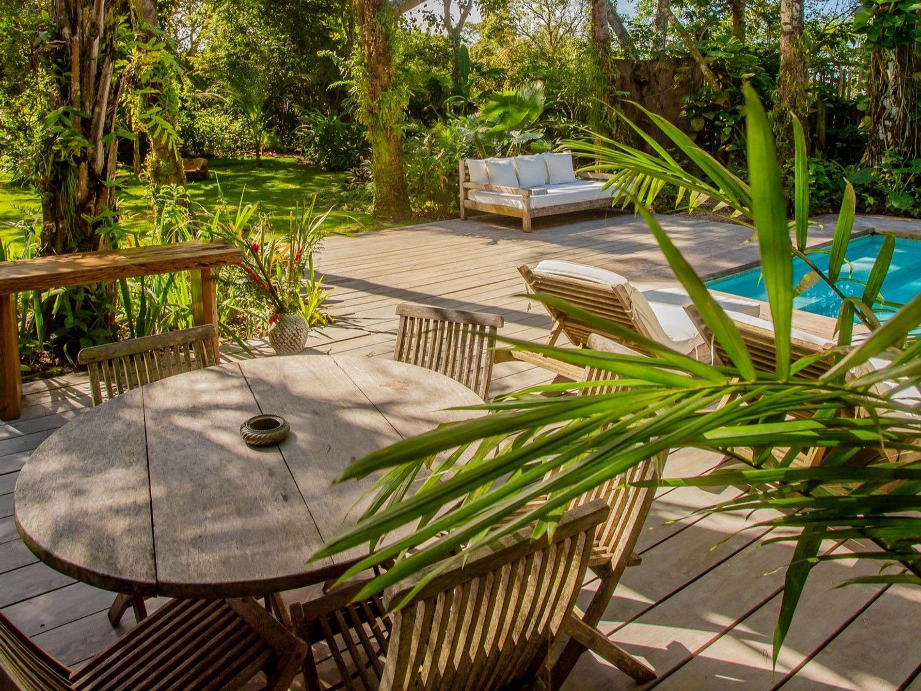 The property, with a rustic design and decoration, has open spaces, integrated with nature, airy and fresh. Two suites in the main house, one on the upper floor with a charming balcony overlooking the garden and the ocean on the horizon. Across the garden, two more large and independent suites, ensuring comfort and privacy for all guests.