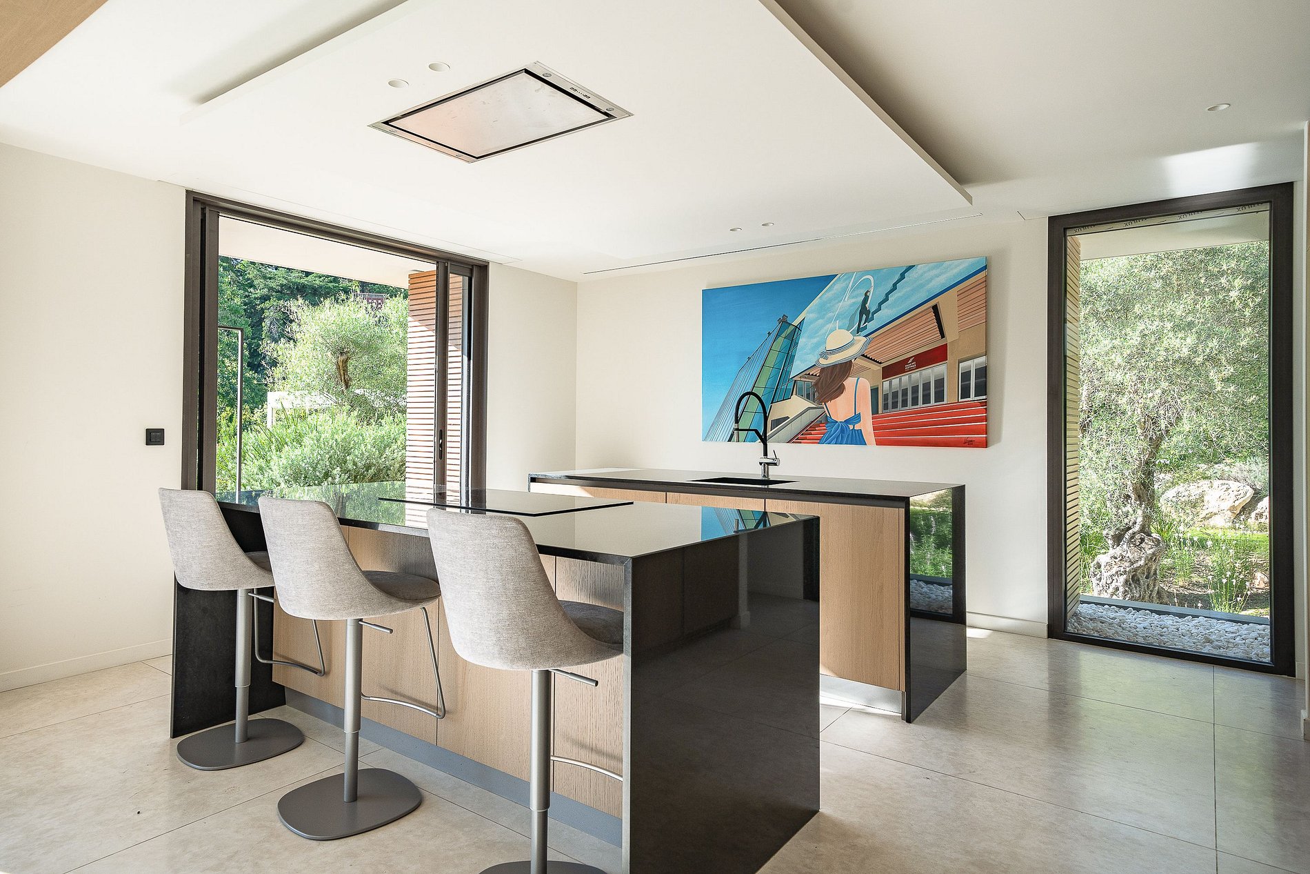 A garage for two cars and covered parking for four additional vehicles—each equipped with electric charging stations—complete this villa designed to deliver a sophisticated and relaxed lifestyle just minutes from the center of Cannes and its world-renowned events.