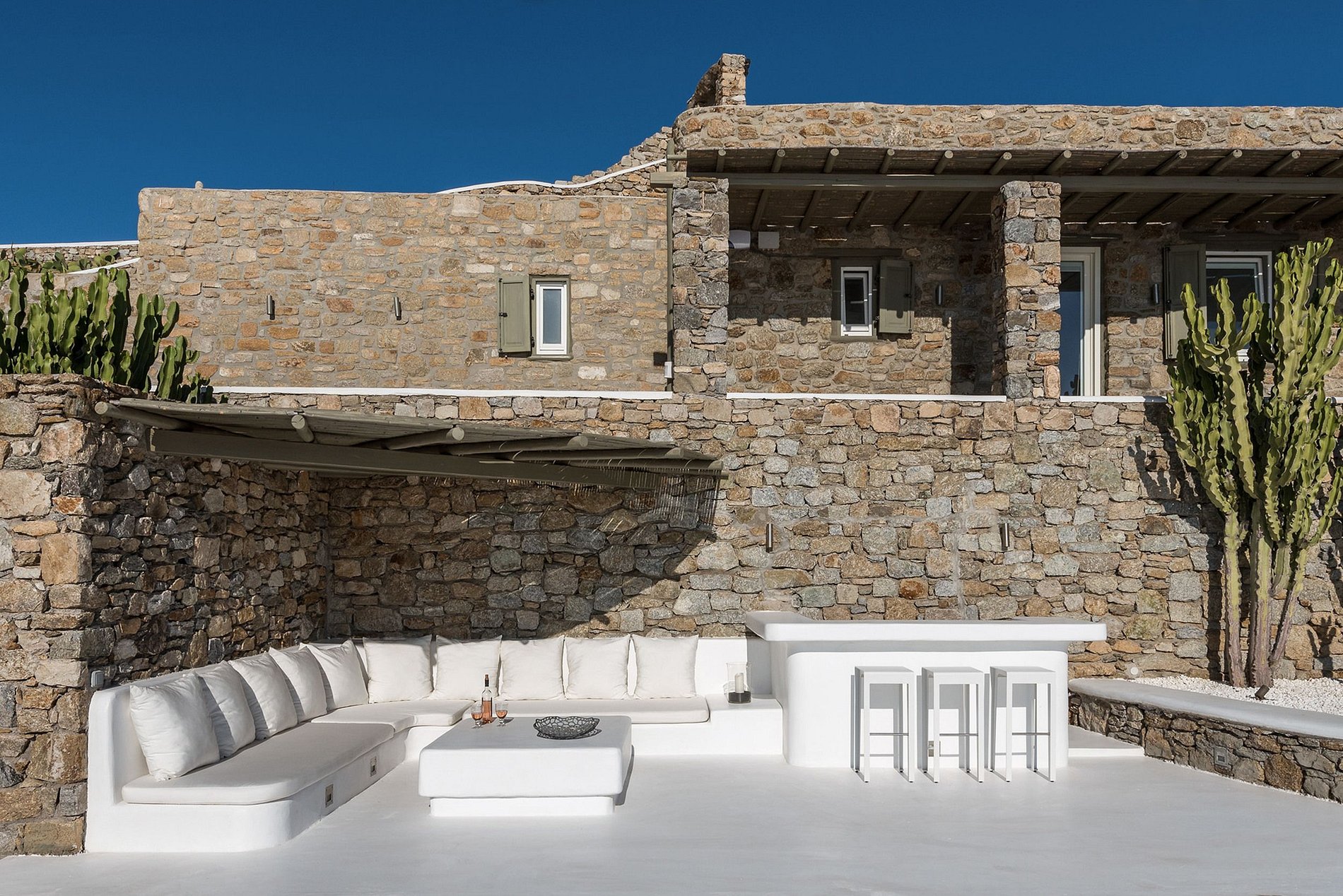 • Built on a hilltop with amazing sea sunset and Mykonos views