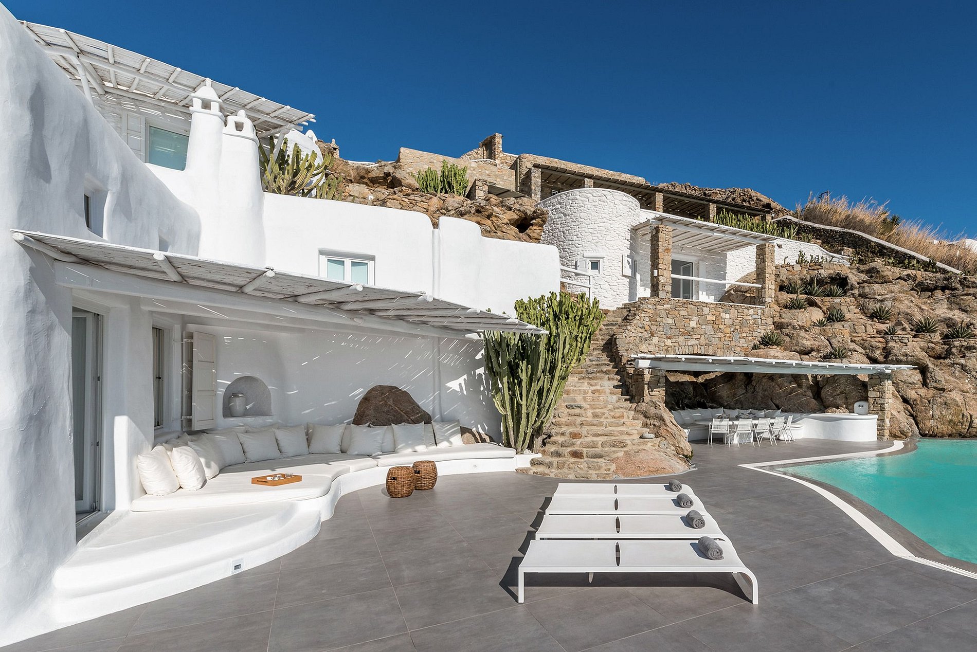 • Built on a hilltop with amazing sea sunset and Mykonos views