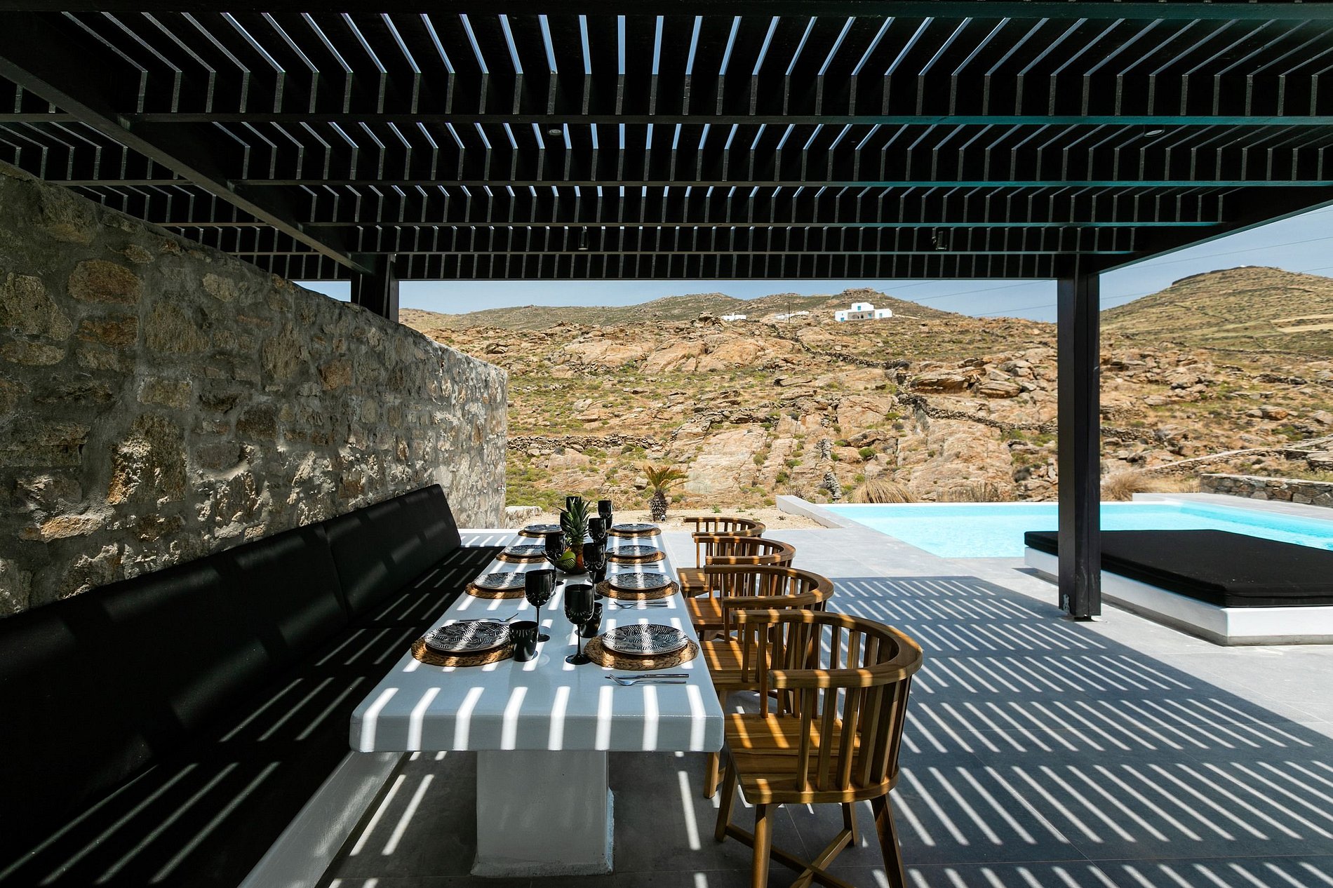 A stunning private pool surrounded by comfortable sunbeds provides the perfect setting for open-air entertainment and the dining area is ideal for a private dinner with breathtaking views.