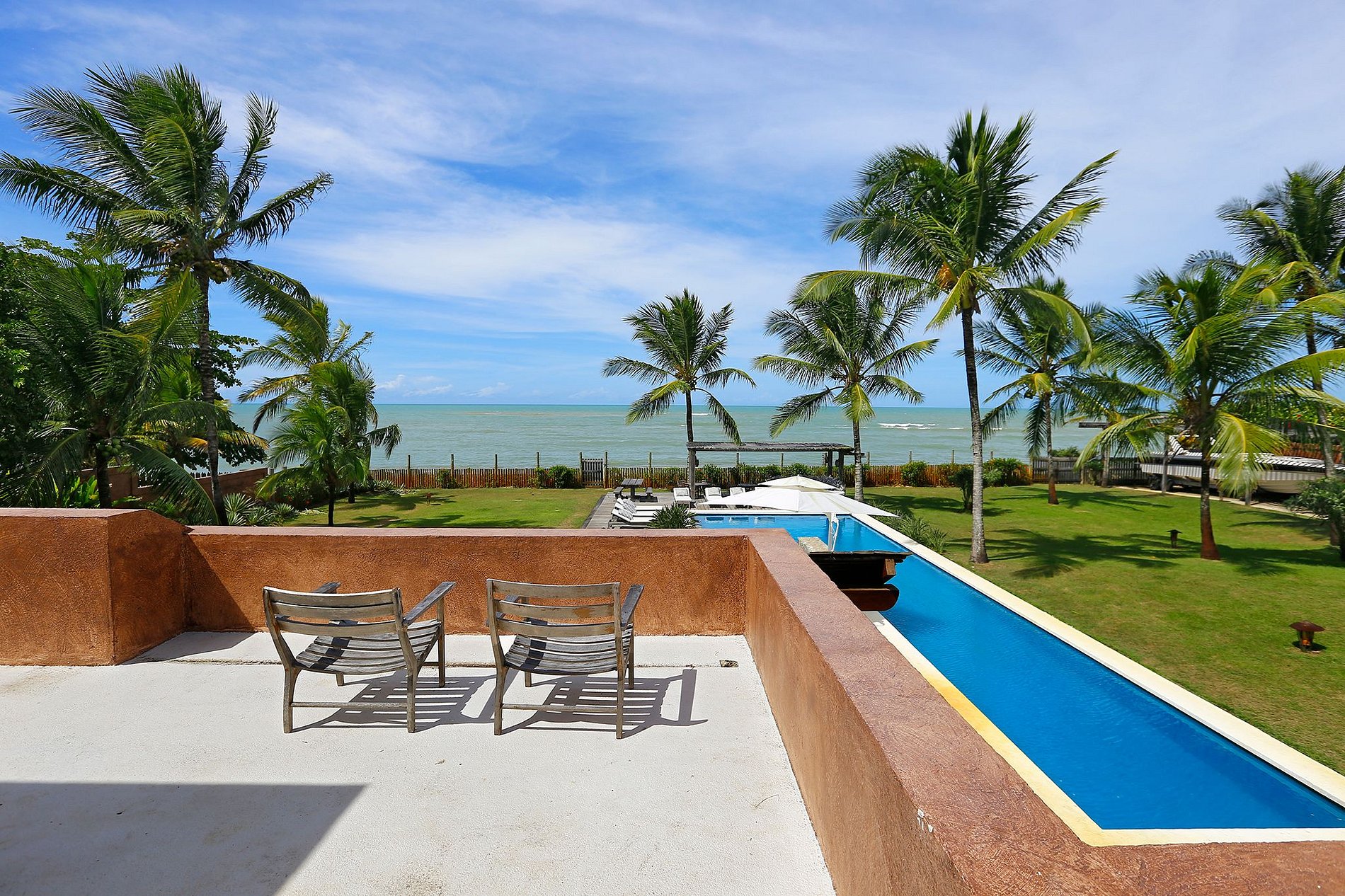 Built on a 5,000 m2 plot, it is located on the peaceful Araçaípe Beach, one of the most beautiful in the village. Pleasant swimming pool, huge garden by the sea, paradise beach, warm and blue waters.
