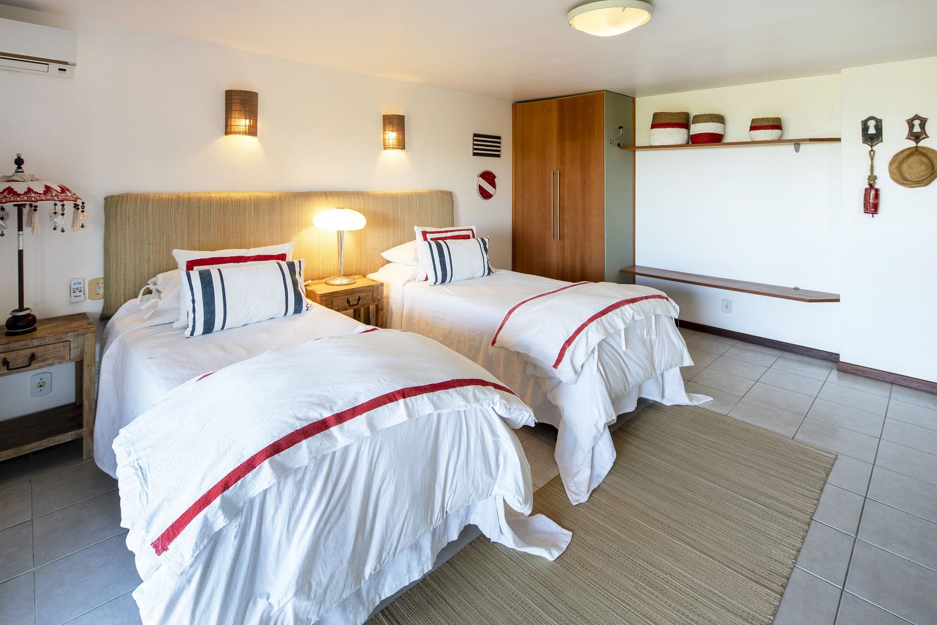 There are 7 complete suites, all with air conditioning. Some suites have 2 single beds and others have a double bed. The master suite has a king-size bed and a wonderful panoramic view from its large sliding doors that give direct access to the veranda with a hammock.