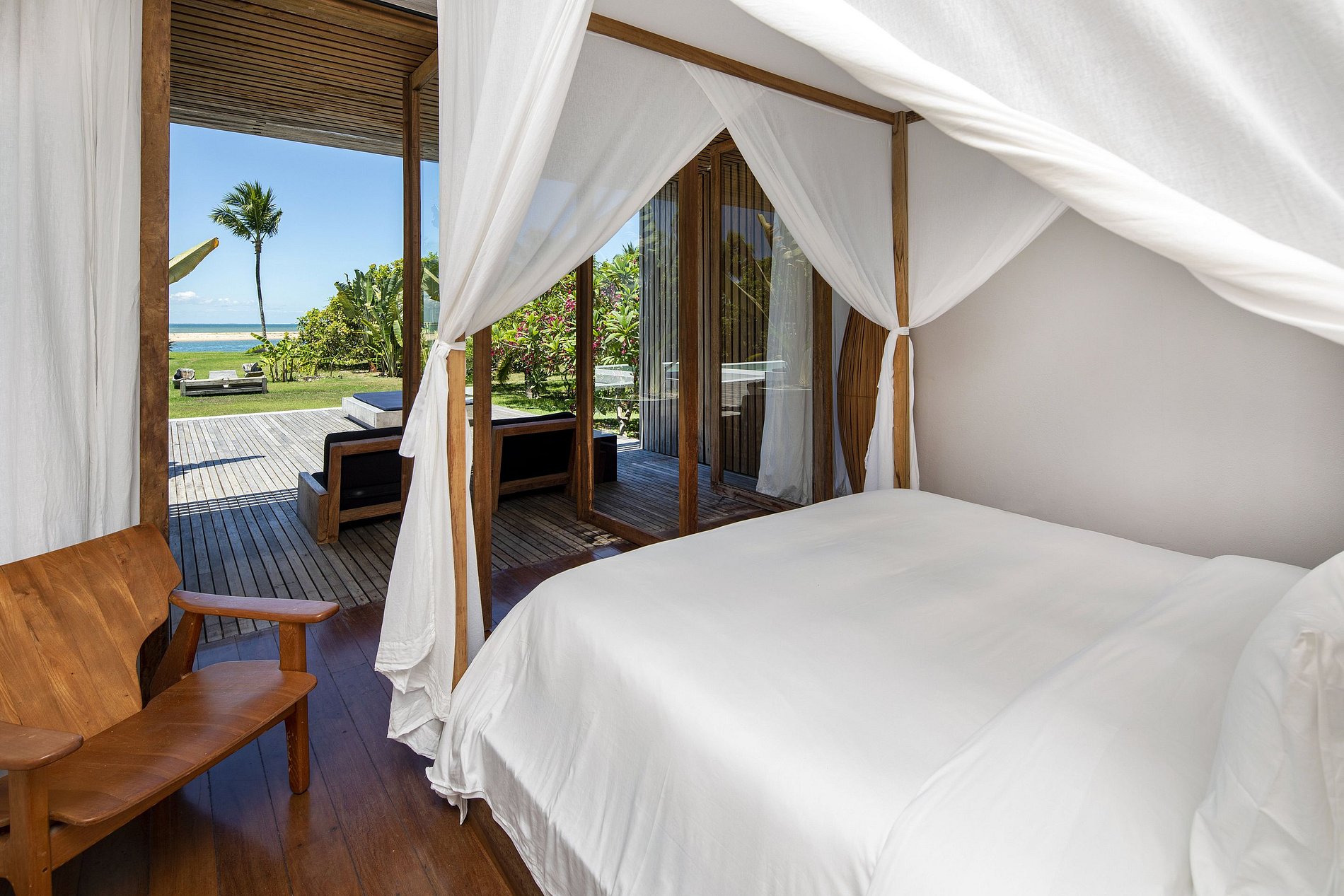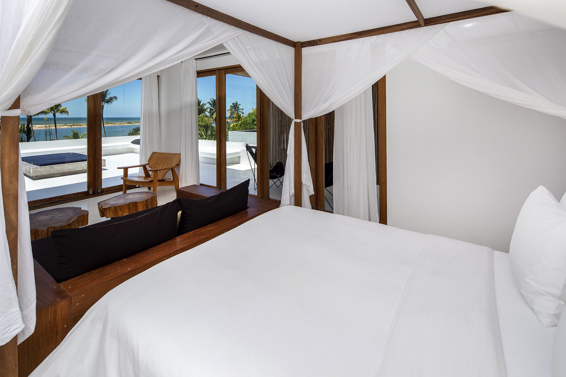 Master suite: King bed, mosquito net, a/c, safe, open terrace with river and sea panoramic view.