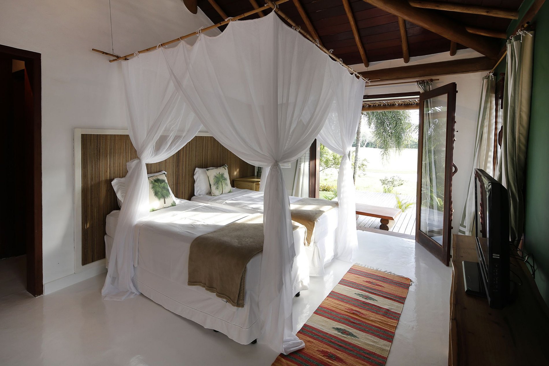 Furthermore, the fact that it's located on the famous Discovery Coast, where over 500 years ago the Portuguese discovered the country, gives the Terravista Golf Course an amazing historical and cultural value.The villa comes with a 1.900 square meter outdoor area. Every inch is dreamfully designed and arranged to leave no wish unfulfilled.Splendid wooden terraces in the back and in front of the villa with loungy furnitures, an amplious swimming pool, hammocks, an exotic garden and a covered outdoor dinning area.