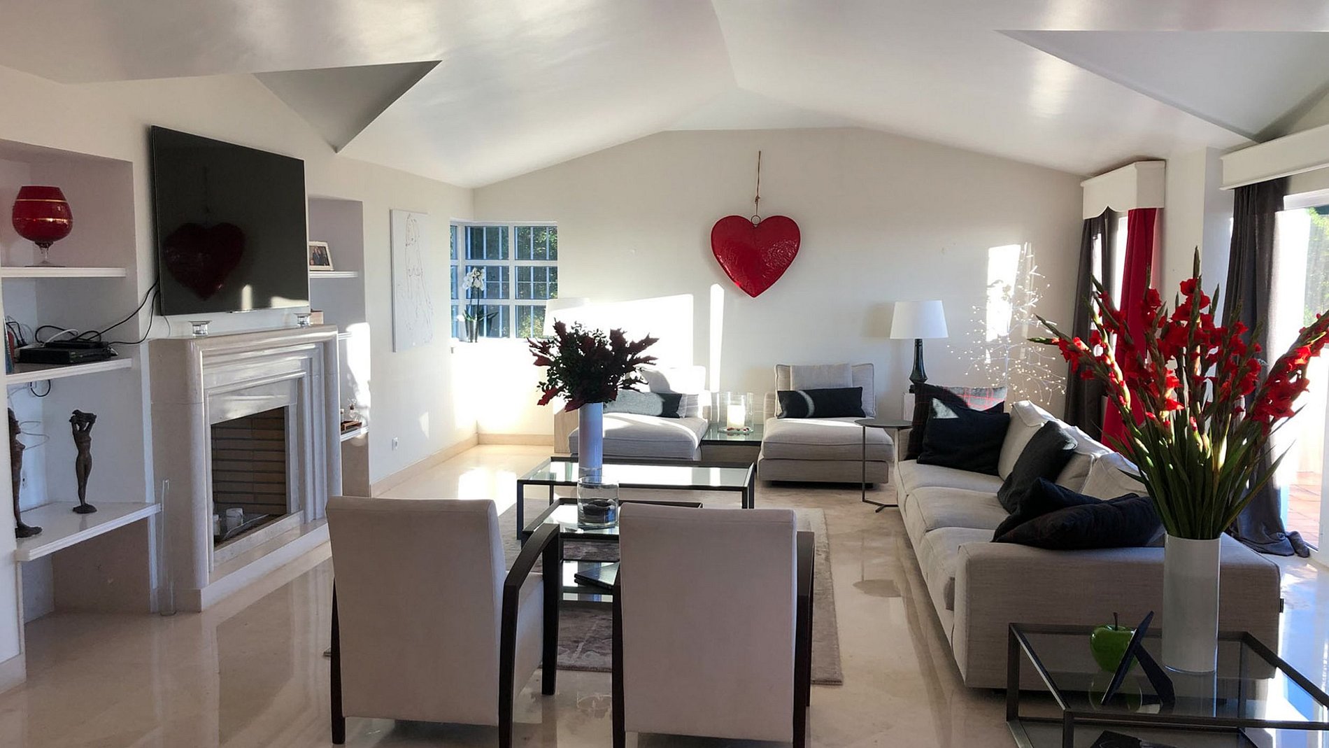 Outside, a large terrace runs the length of the home with an unobstructed view of the Atlantic Ocean and the Guincho coastline. A spacious lawn area with palm trees offers total privacy and shade during warm summer days, while the swimming pool with its adjoining pergola, bar, and BBQ wins the attention.