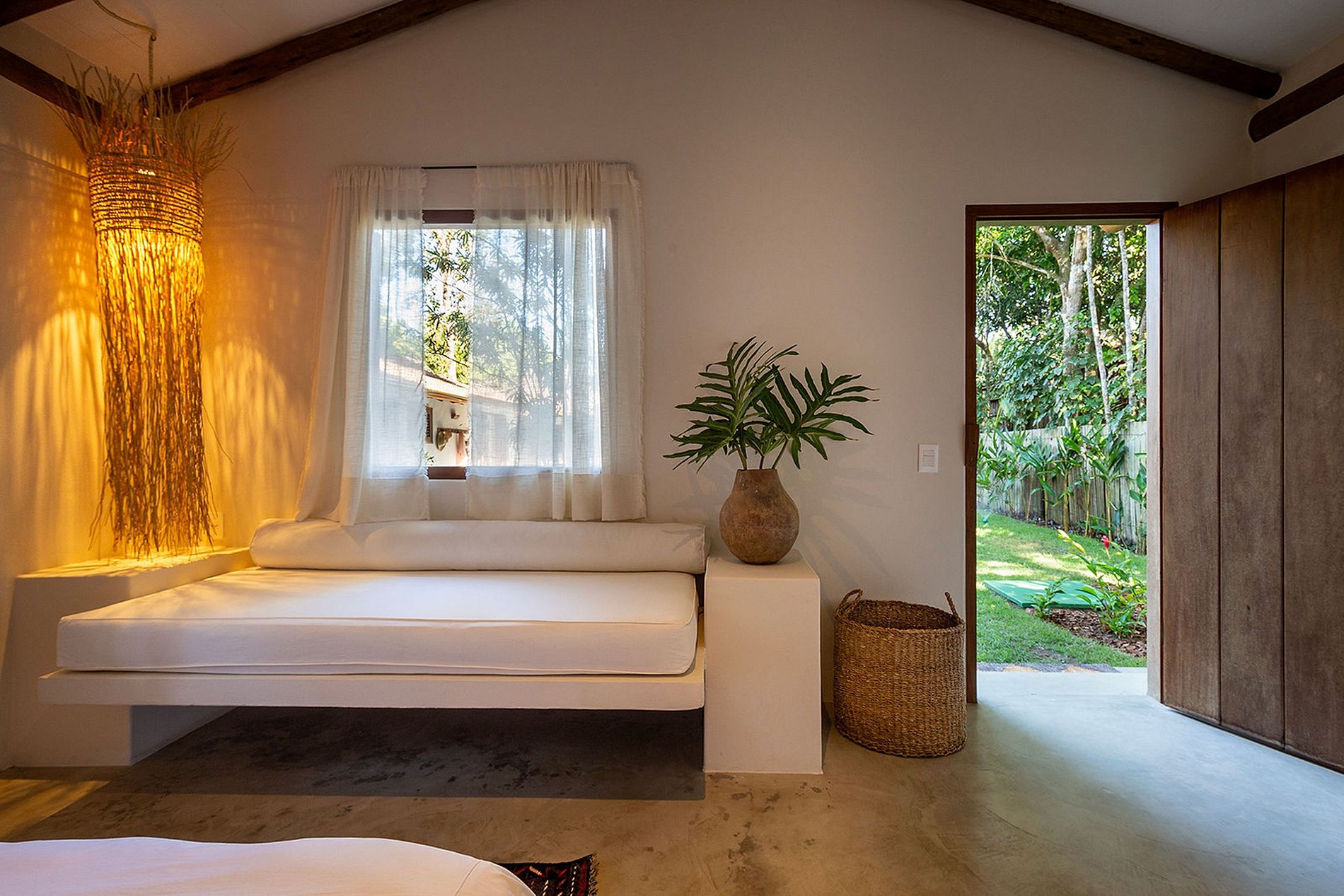 The stylish master suite, with a desk, dressing and graceful designed bathroom2 privates cottages are located after the pool, offering privacy and comfort. Each one has a Queen bed and a single beds. Queen bed can be set up in two singles beds, offering up to 3 singles beds per cottage. This holiday rental is the perfect option to spend your vacations in the noble area of Trancoso, with safety and comfort for a reasonable price!