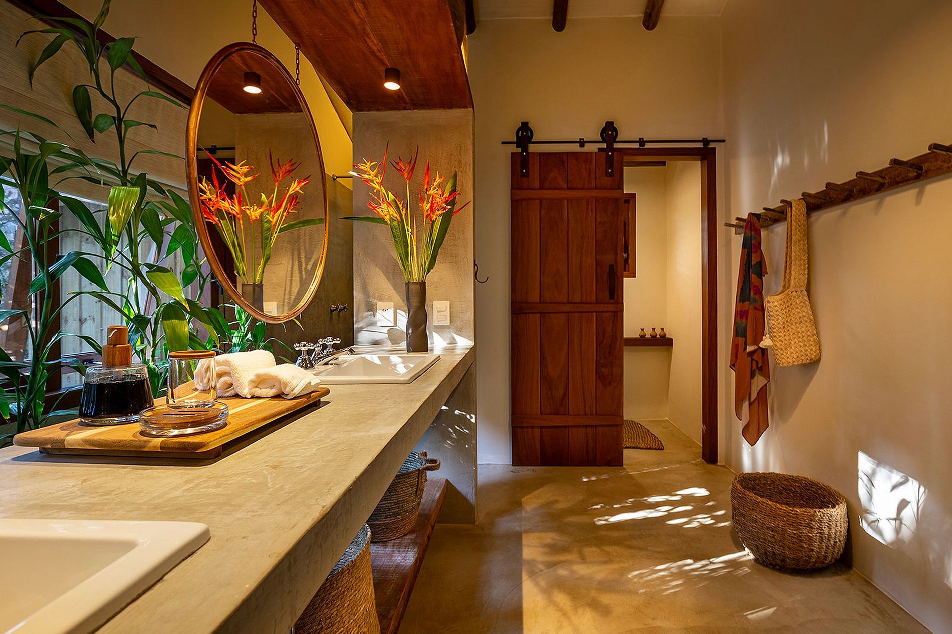 The stylish master suite, with a desk, dressing and graceful designed bathroom2 privates cottages are located after the pool, offering privacy and comfort. Each one has a Queen bed and a single beds. Queen bed can be set up in two singles beds, offering up to 3 singles beds per cottage. This holiday rental is the perfect option to spend your vacations in the noble area of Trancoso, with safety and comfort for a reasonable price!
