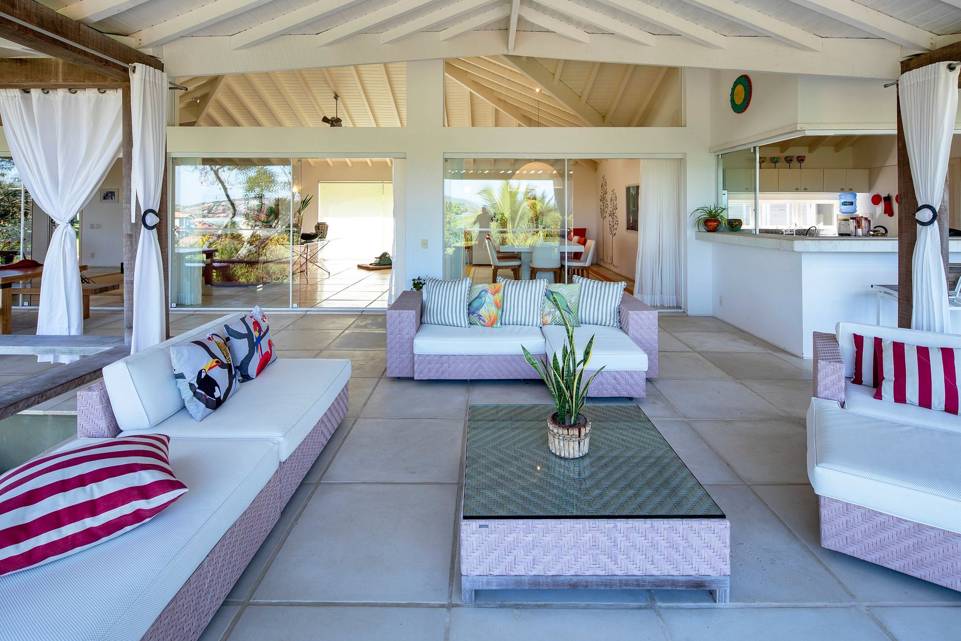The house has a clean, beautiful and contemporary design but still with a special tropical touch, with a very wide layout, with glass doors and windows that extend from the ceiling to the floor, allowing natural light and ventilation. From practically all points in the social areas, it is possible to see the nature and wealth of Búzios.