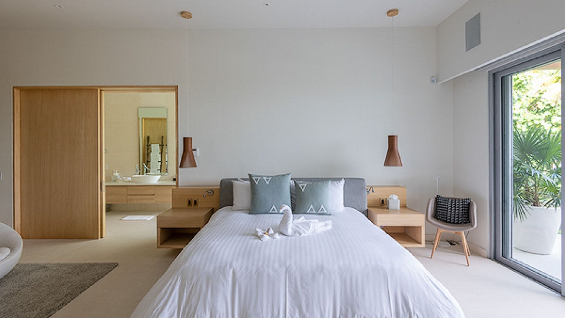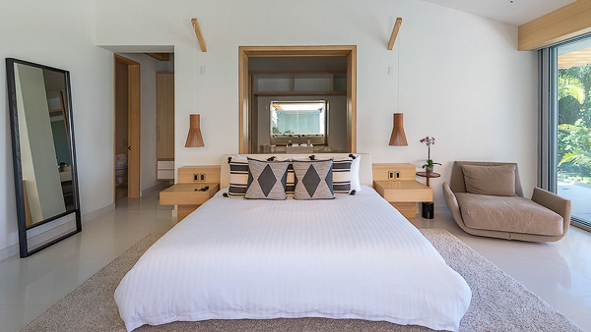 The villa offers seven bedrooms, all with en-suite bathrooms, including king suites and a flexible bunk-style configuration, comfortably accommodating large families or groups.