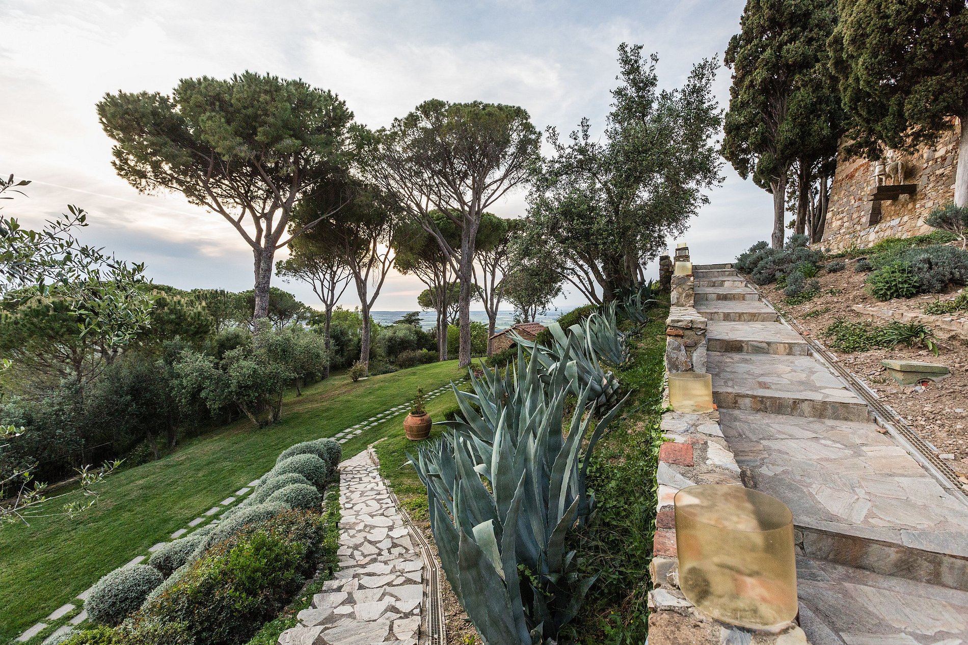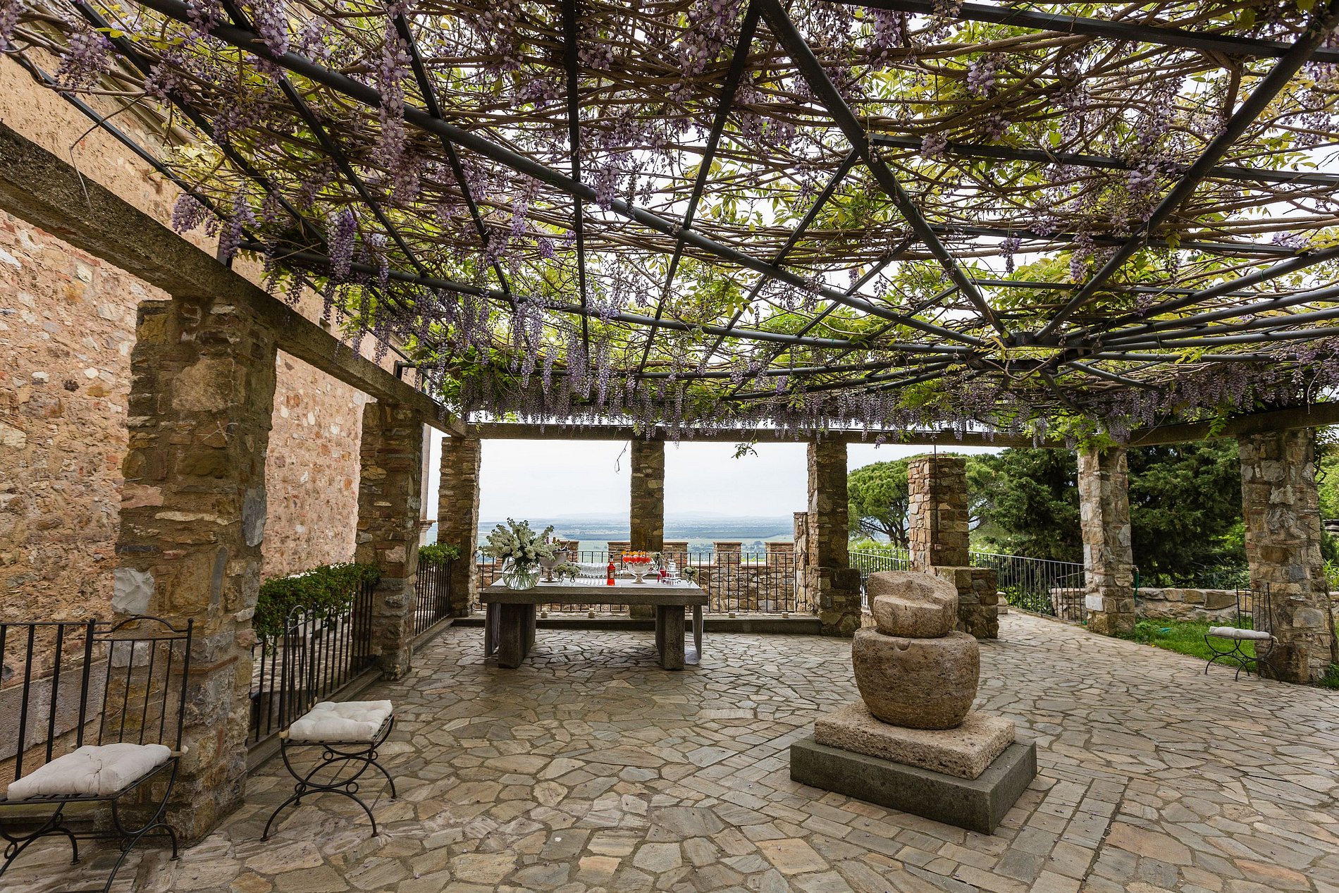 Consisting of enormous 1500 square meters interiors with 200 square meters of terraces and 7 hectares of land, affording a spectacular view of the Tuscan countryside: you feel like you have stepped into a fairytale.