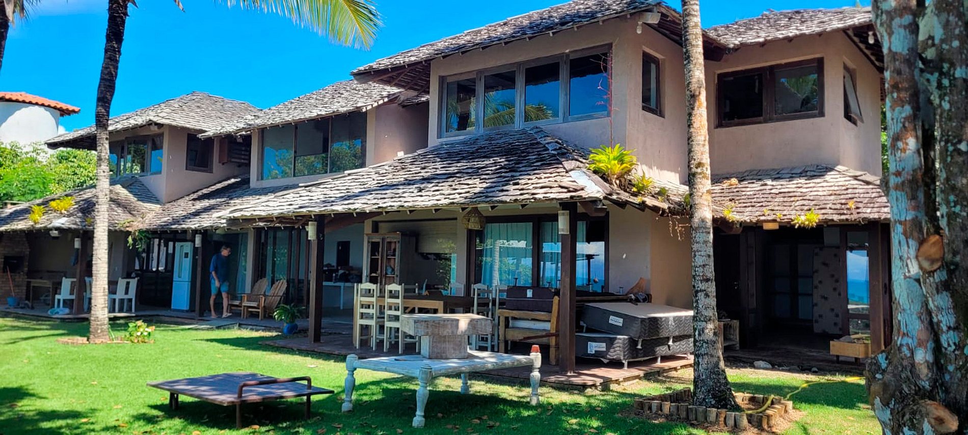 Located at the top of the hill, on a plot of 4200 square meters. The property has 500 meters of built area. Divided into a pool, main house with 5 suites and two bungalows. Accommodates up to 15 people. The house is 300 meters from the street considered the most charming in Brazil. It has 35 linear meters of sea front, with an angle of almost 180 degrees. The sea view is one of the best in Brazil.