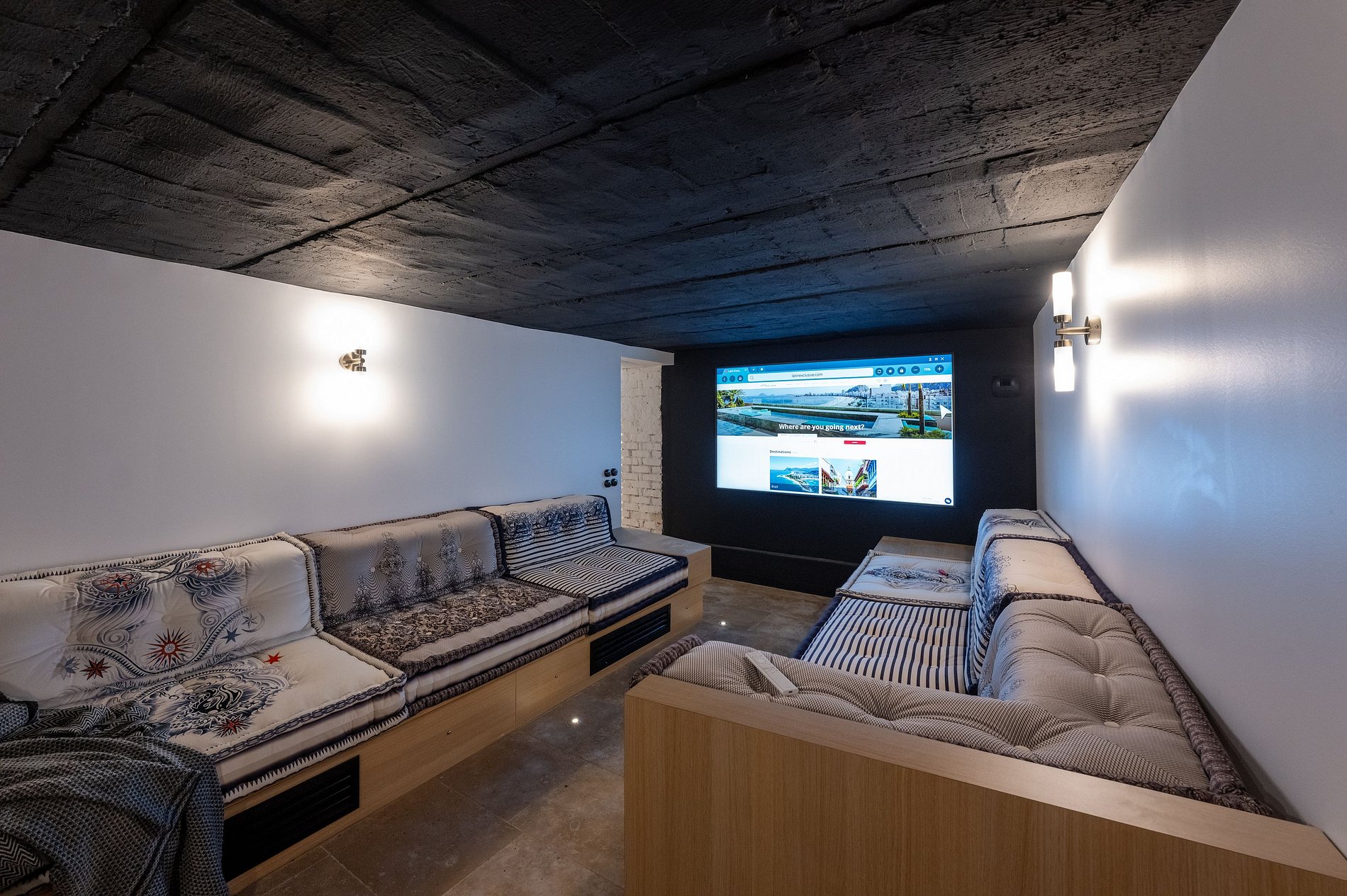 Beneath the château, discover an exceptional wine cellar, furnished with a dining area and TV lounge, perfect for tastings and convivial moments.