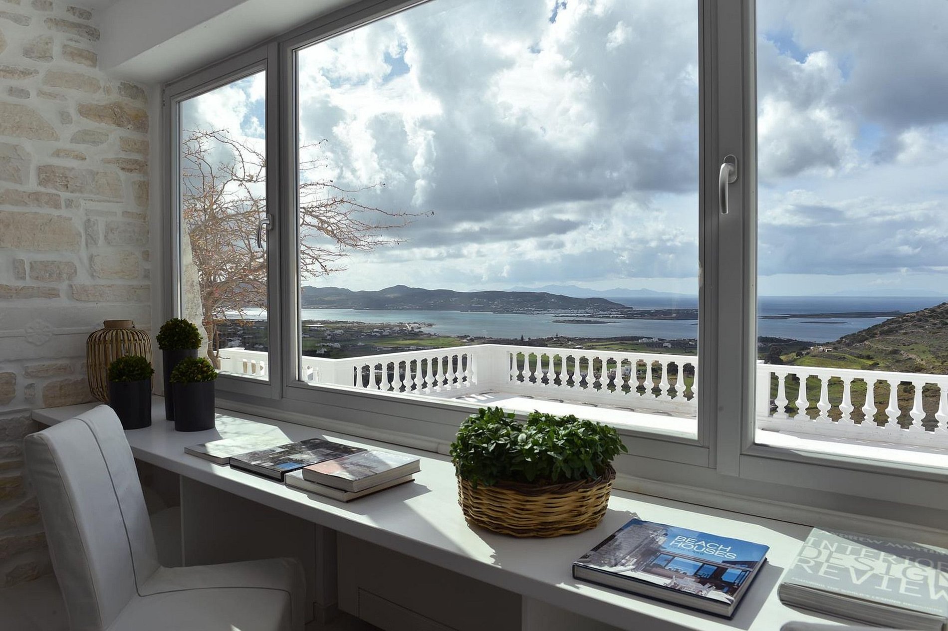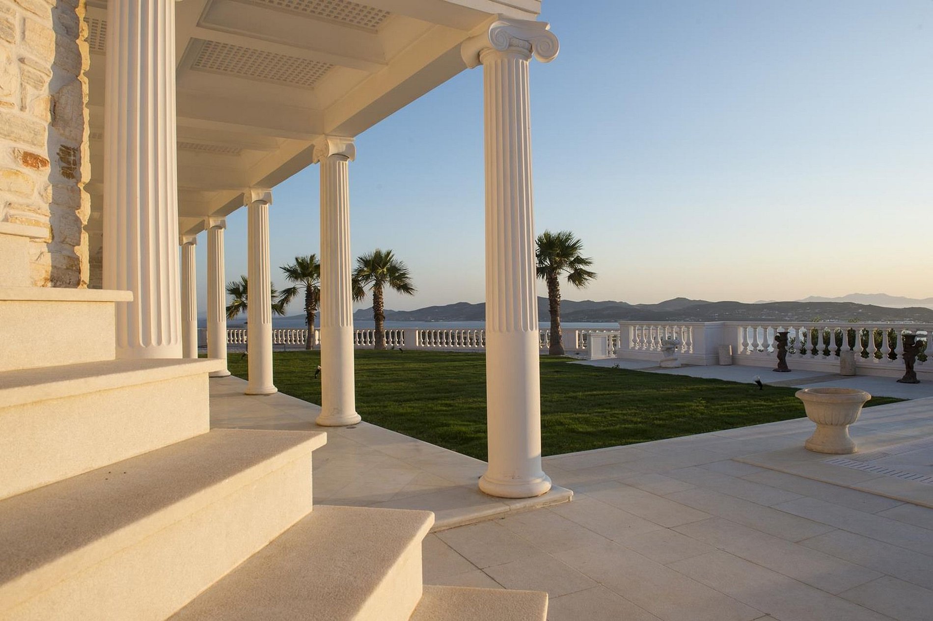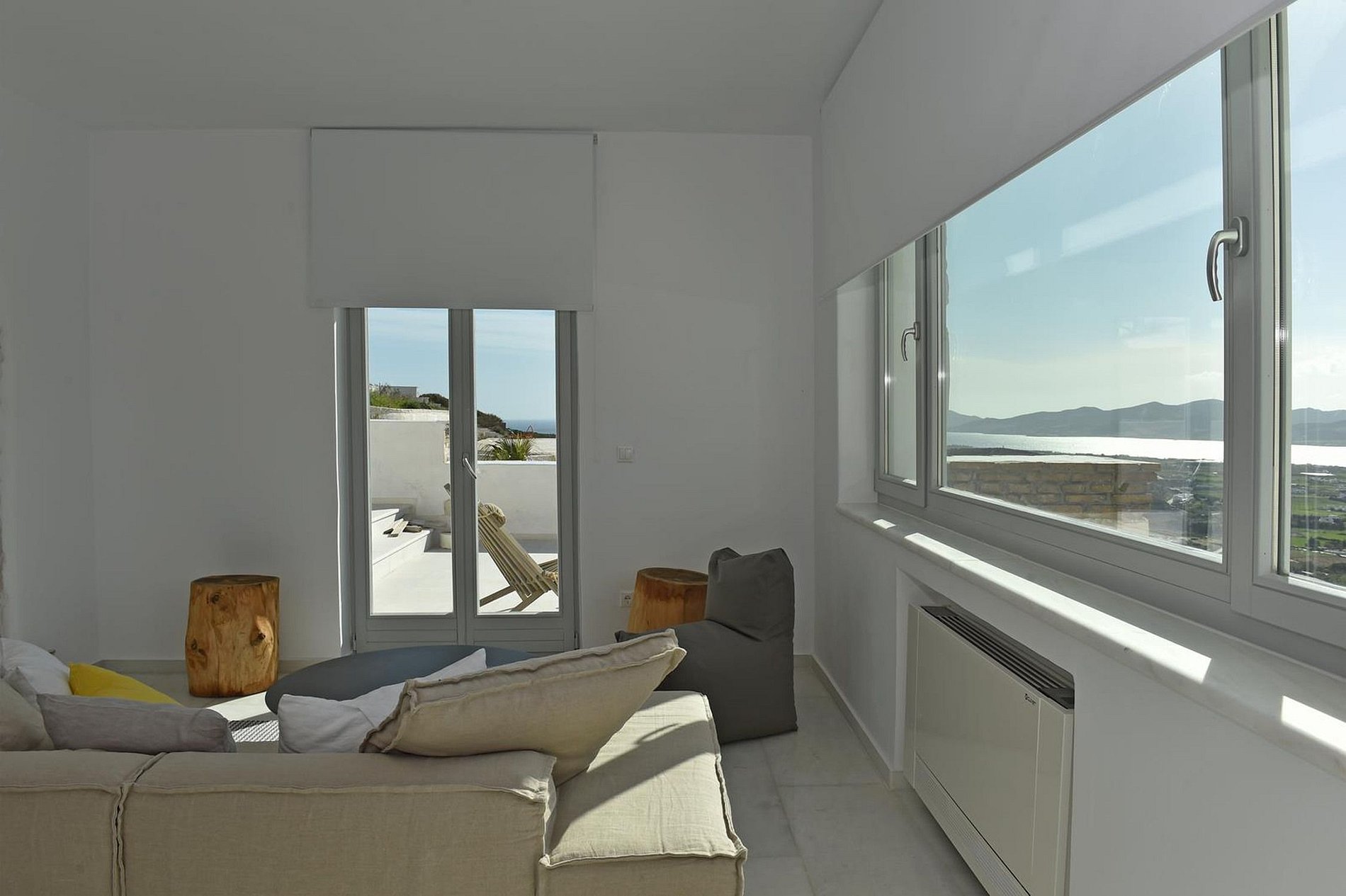 Ideally located Villa, a few minutes away from Eirini Beach in the southwest area of the island of Paros. This clean, white property reminds one of a glorious Greek temple surrounded by whitewashed marble columns, overlooking the Aegean Sea.