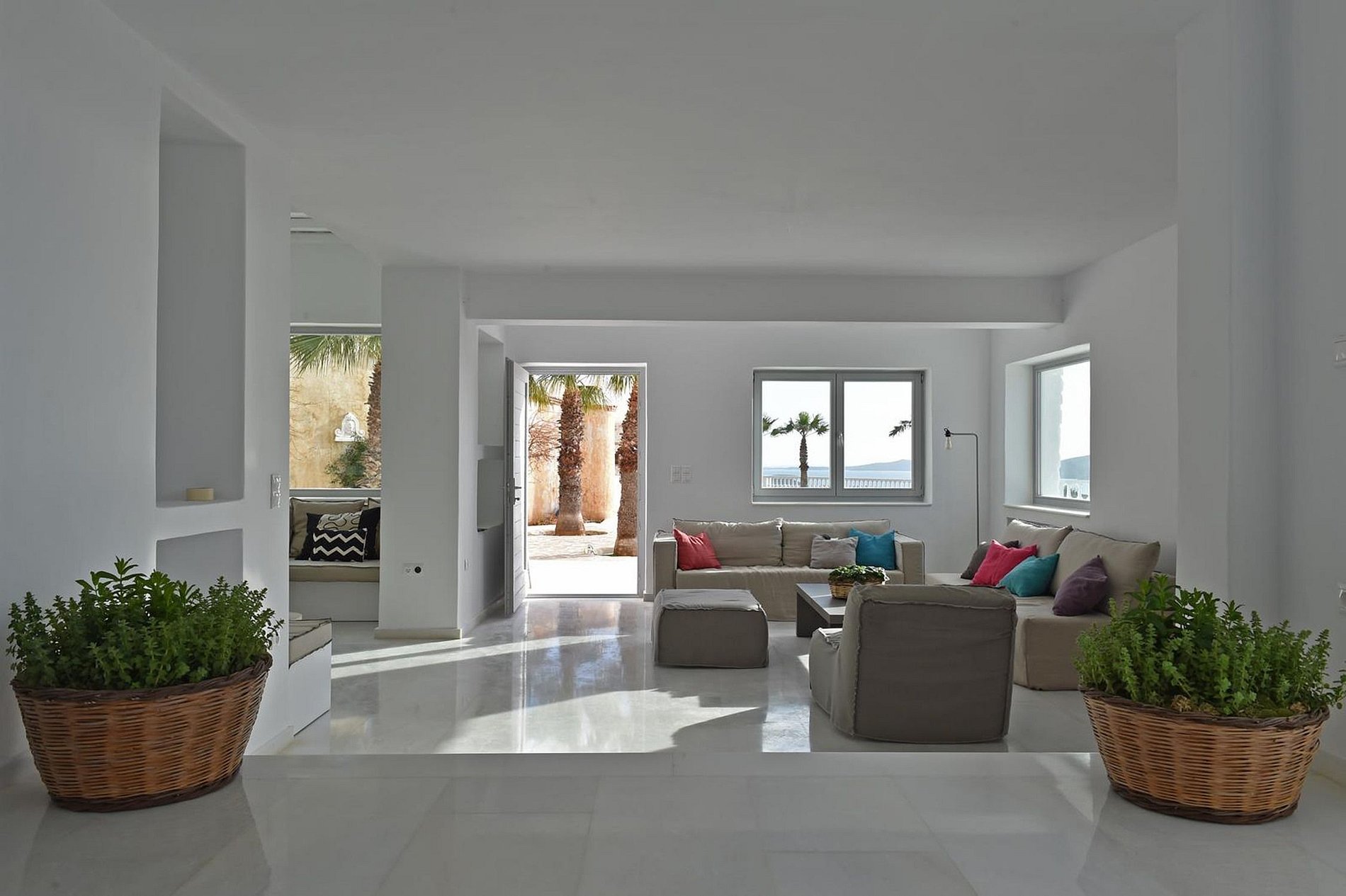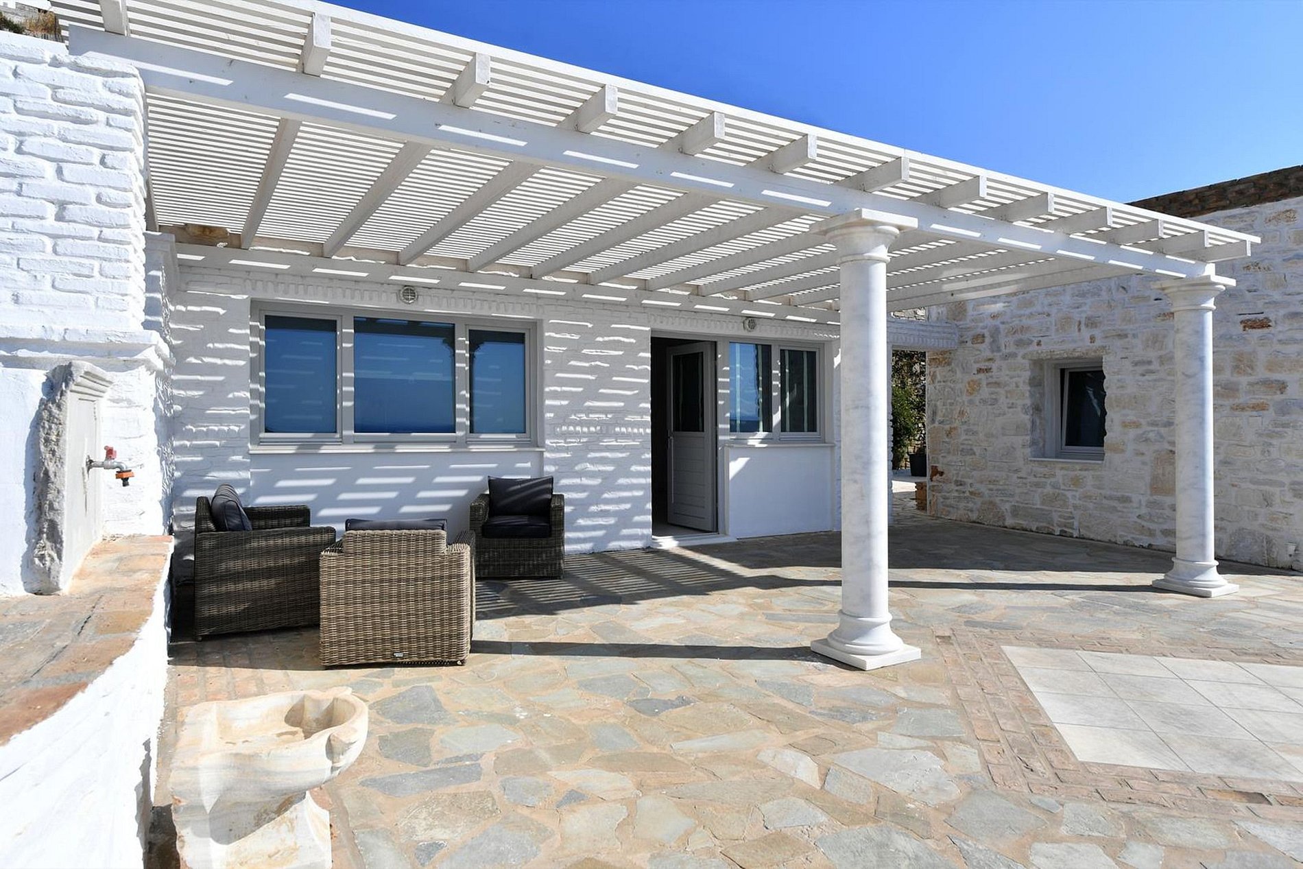 Ideally located Villa, a few minutes away from Eirini Beach in the southwest area of the island of Paros. This clean, white property reminds one of a glorious Greek temple surrounded by whitewashed marble columns, overlooking the Aegean Sea.