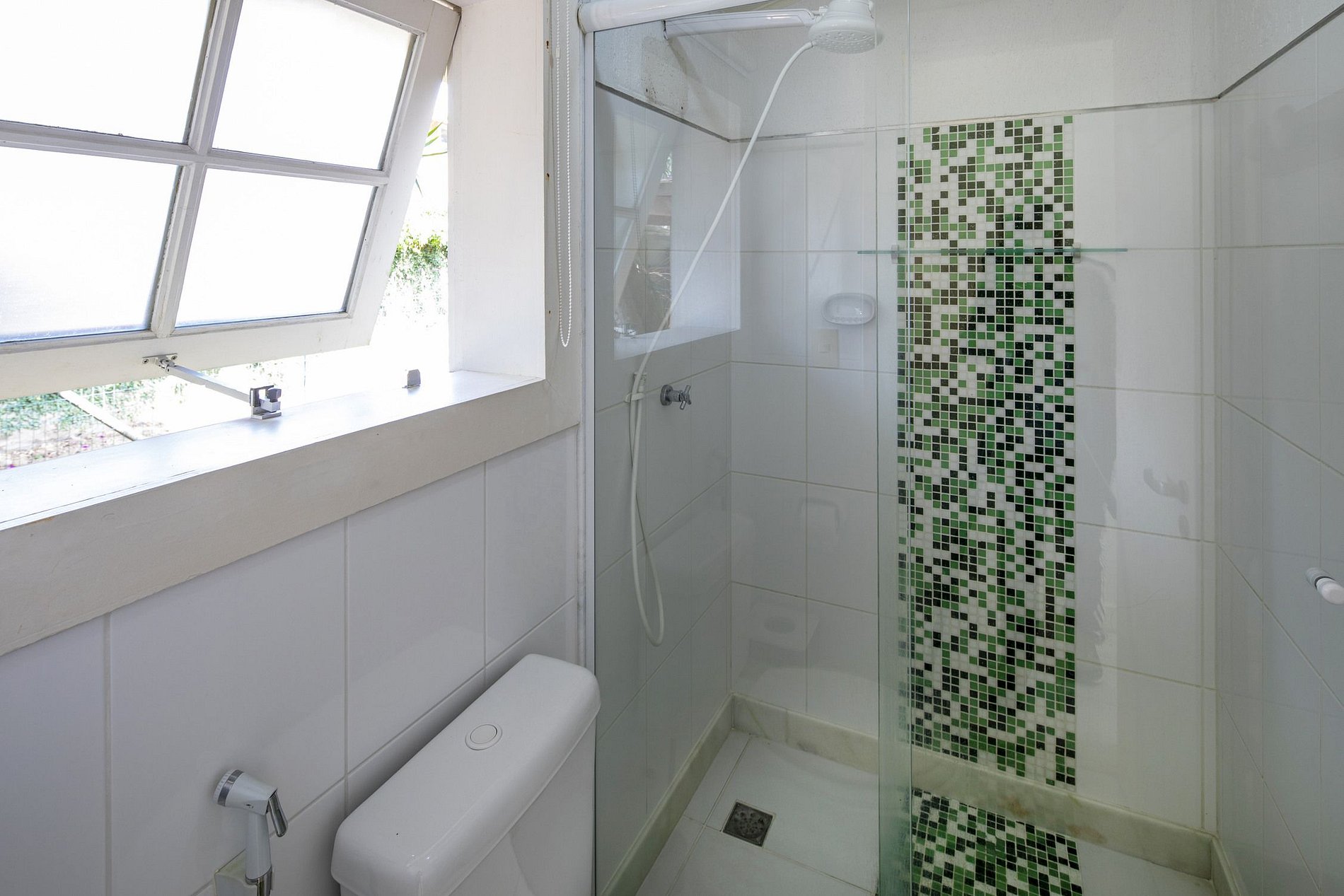 Beautiful house of 459 m2 located in front of Manguinhos Beach in Buzios. It has six bedrooms (four suites) and can comfortably host up to 16 people, an employee room, a beautiful and bright living room, dining room and fully equipped kitchen.