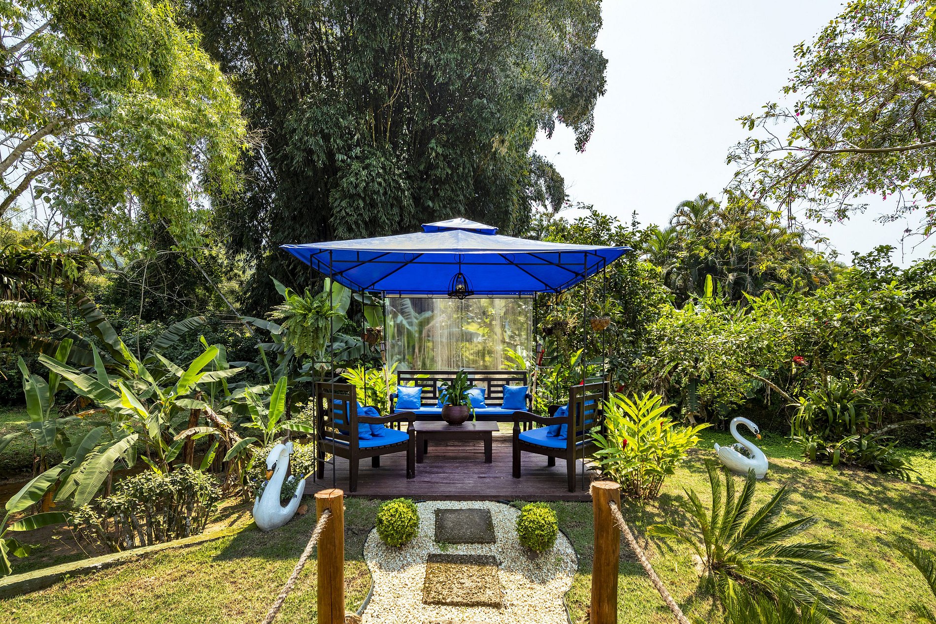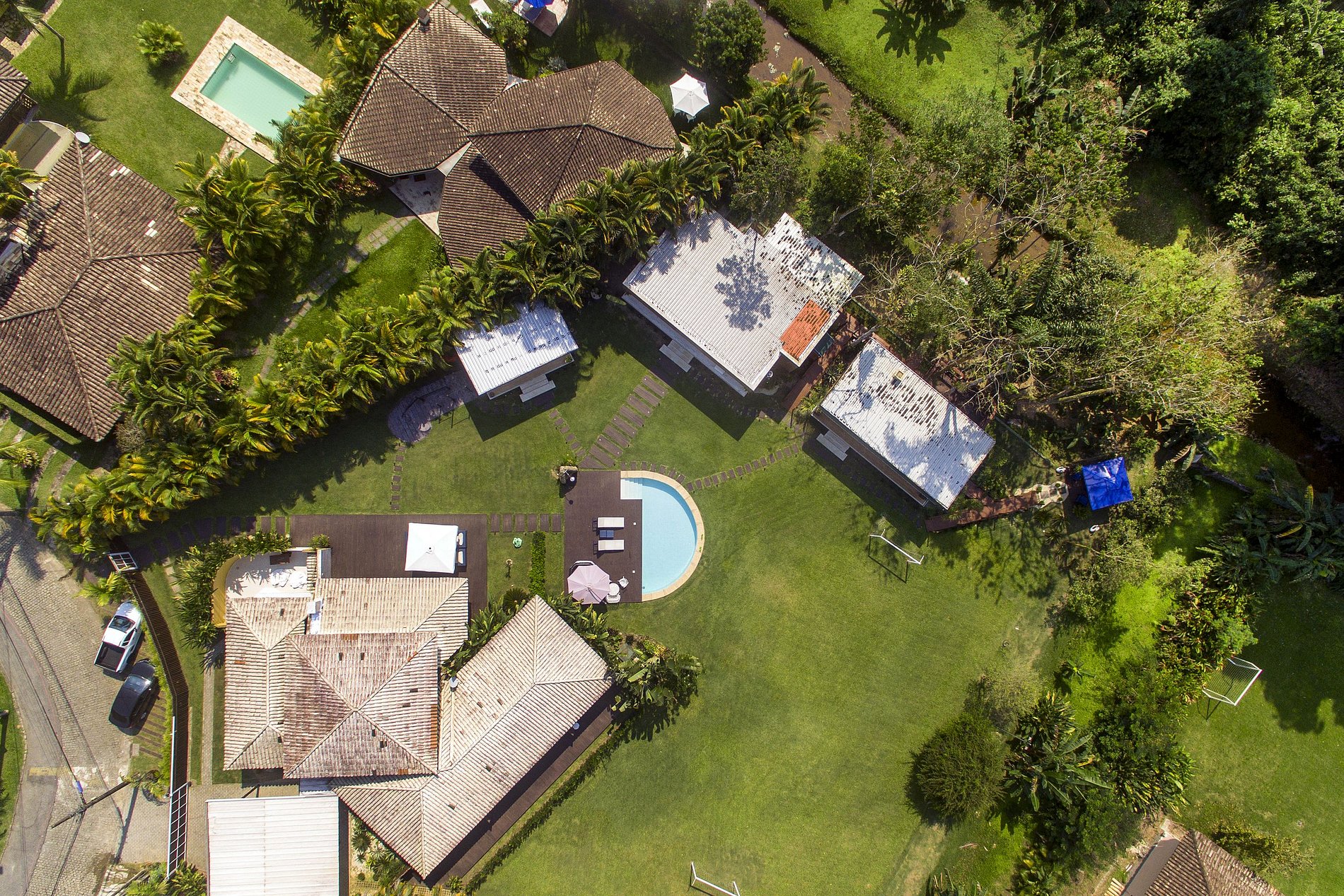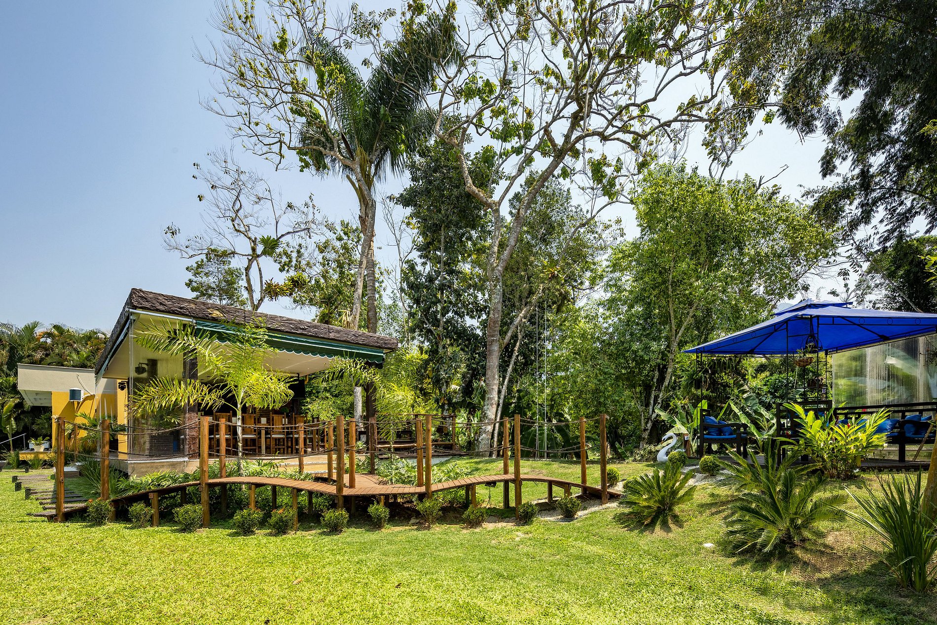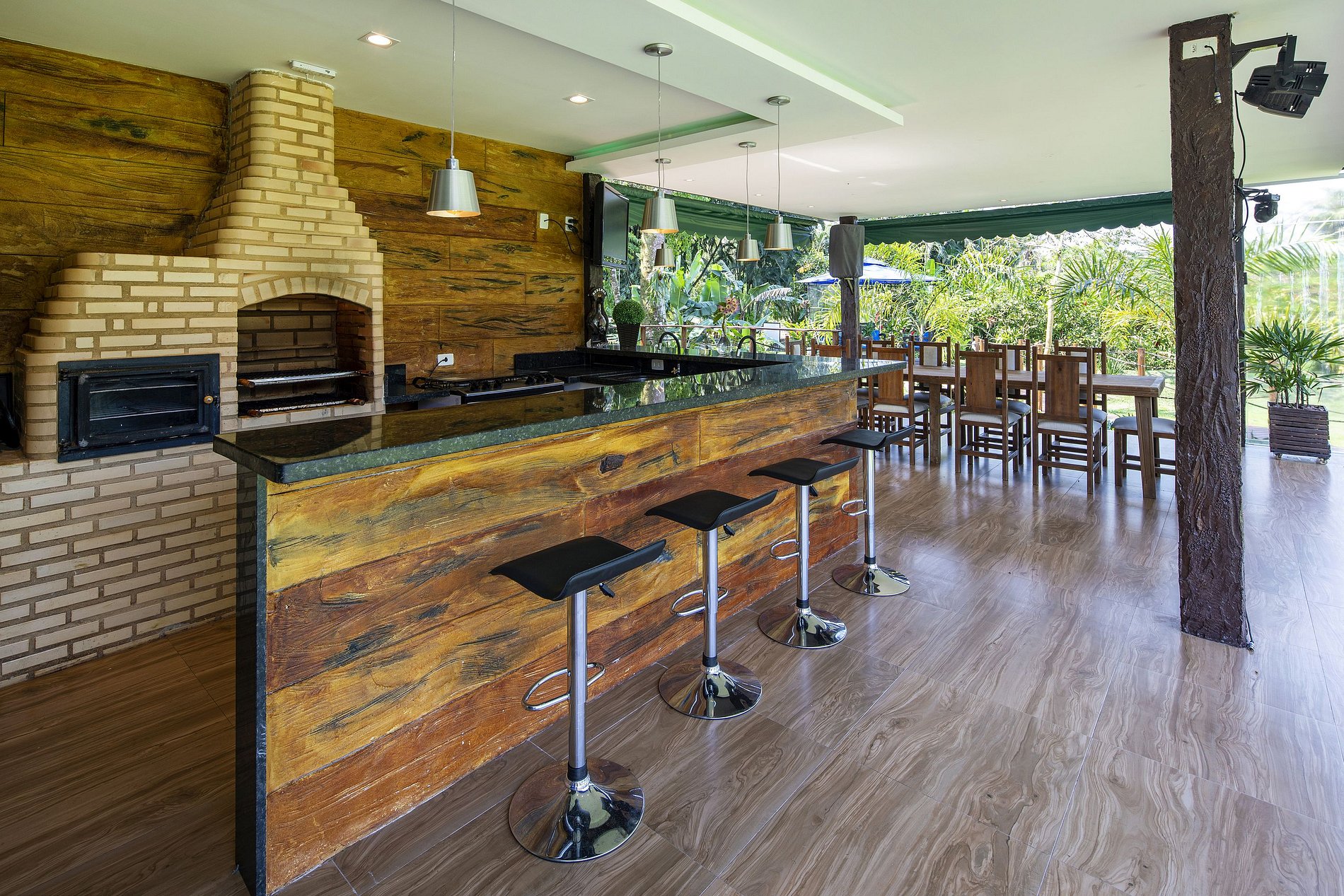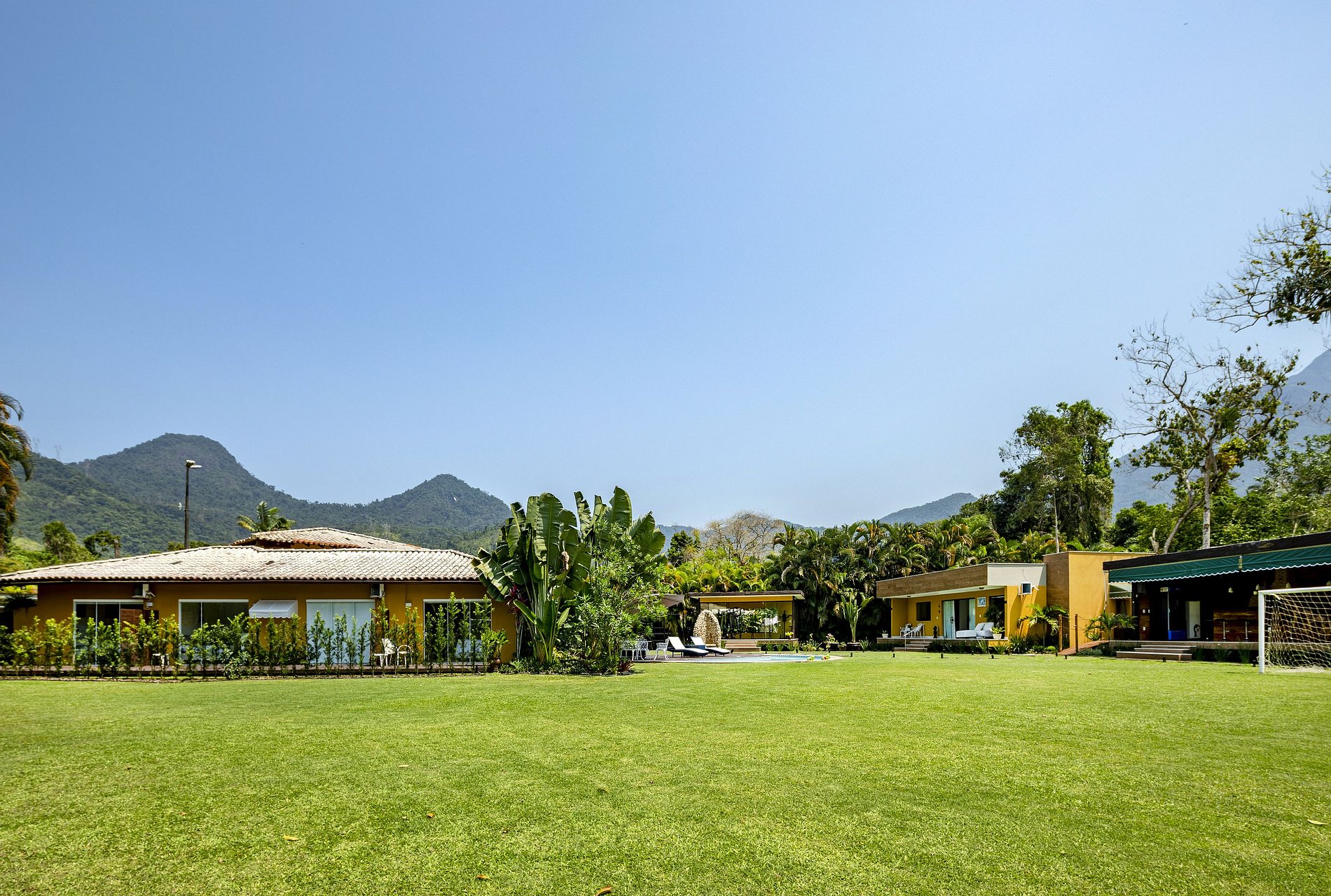 Due to the wonderful immersion in the Atlantic Forest, the property has a stream in the back and native trees around it. The entire length of the land is grassy and the external area has a gourmet space with a barbecue, wood stove, pizza oven, gas stove, table for up to 12 people, TV and a bathroom.