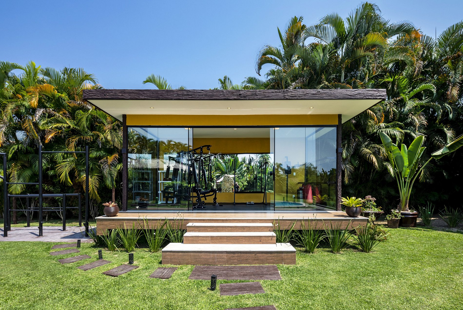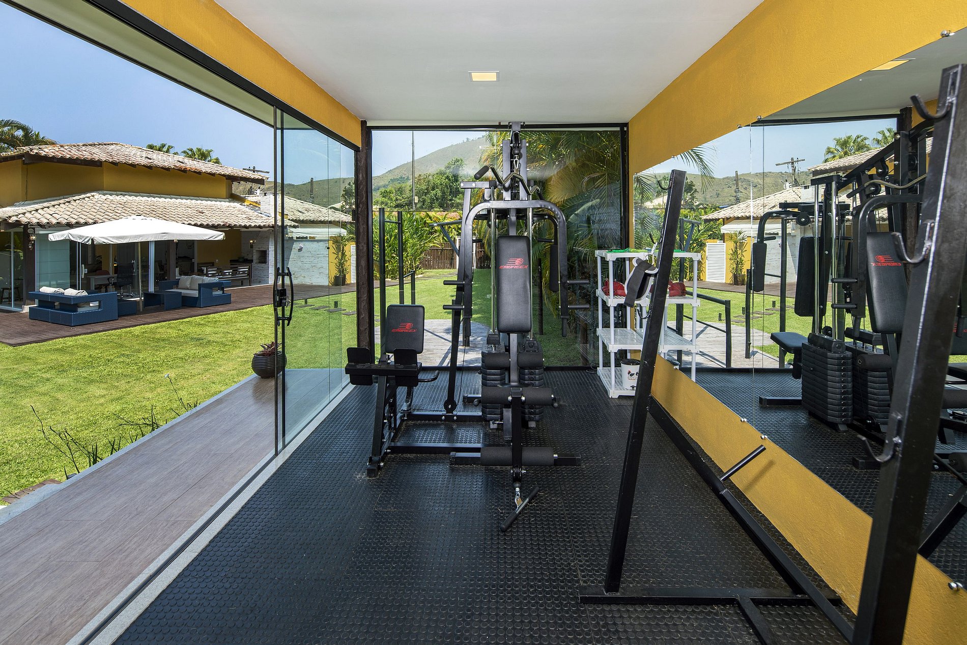 Also in the leisure facilities, there is a covered gym, equipped with a weight station, professional equipment and a boxing bag, surrounded by glass windows so you can stay in shape even on rainy days.