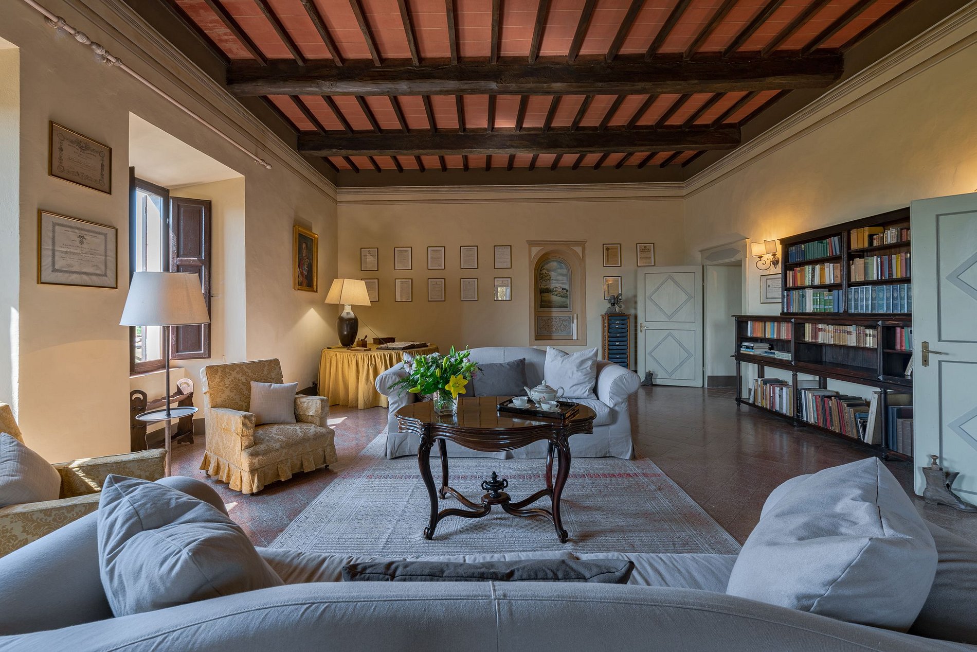 This beautiful castle offers a unique experience, the real aristocratic Tuscan lifestyle, featuring 8 bedrooms with en suite bathrooms. The suite at the top of the tower boasts a 360° view of the surrounding valley. Highlights: a country-style kitchen with all the modern amenities, a dining room, 2 large living-rooms with original painted beams, 2 smaller rooms with frescoed ceilings. The selection of intimate seating areas in the garden completes this magnificent residence. A large pool, gym, a tennis court, a wellness spa with a sauna is exclusively available for the castle guests. The property is also available for private events and weddings. Services include on-site manager for daily travel advice and bookings for excursions. Continental breakfast is also included, according to the client’s specifications and served from 8.30-10.30, 7 days a week. Guests will enjoy exclusive use of all the external areas and swimming pool, as well as exclusive use of the wellness area facilities with sauna and gym with toiletries supplied. Tennis court with racquets and balls are supplied for guests' use. During your stay, a special gift: organic extra-virgin olive (1 litre) from the estate’s own production.