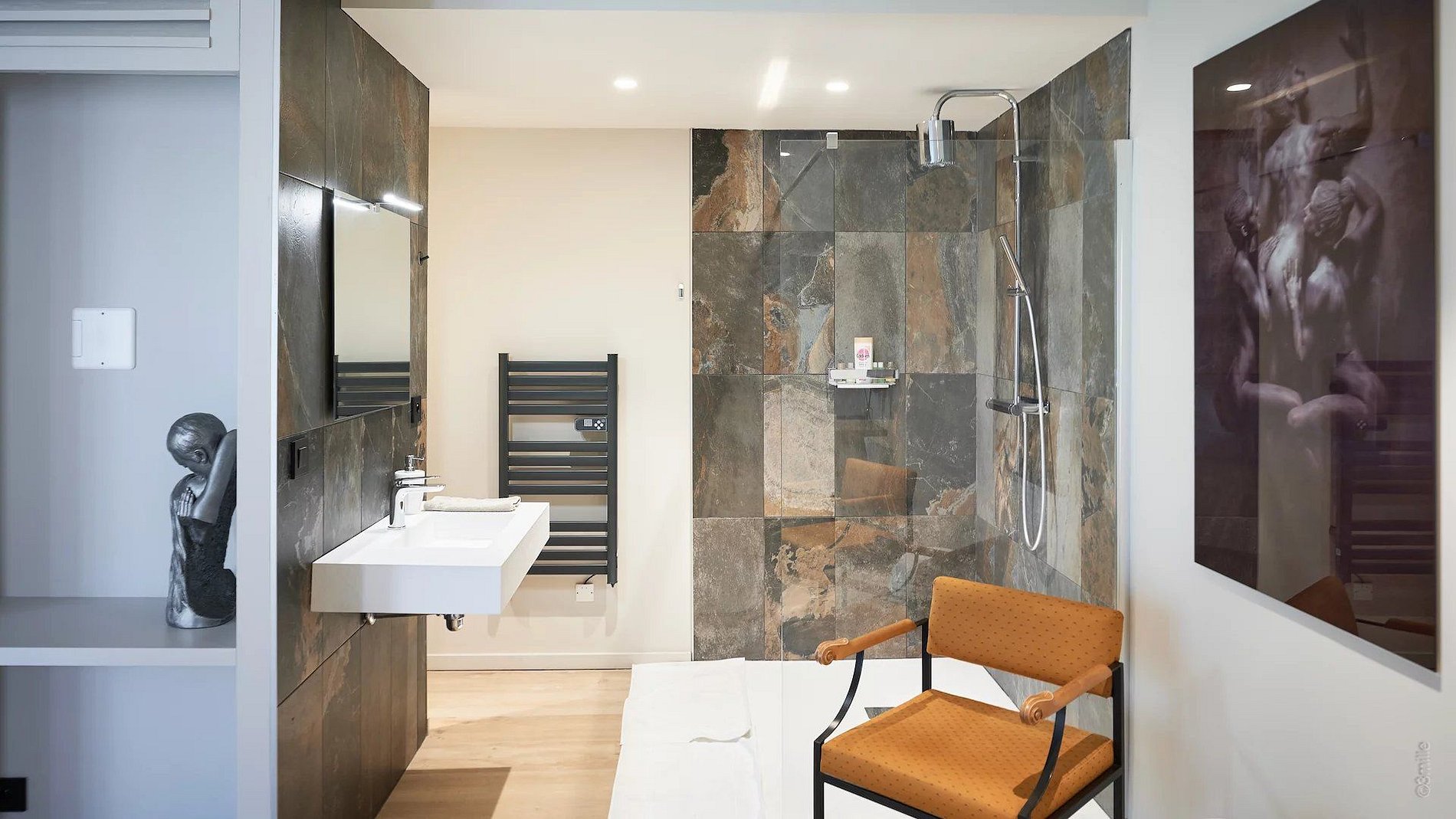 For relaxation and wellness, the villa boasts a heated outdoor pool, an indoor pool with a massage table, a pétanque court, as well as a gym, sauna, and wine cellar. A separate studio provides additional accommodation.