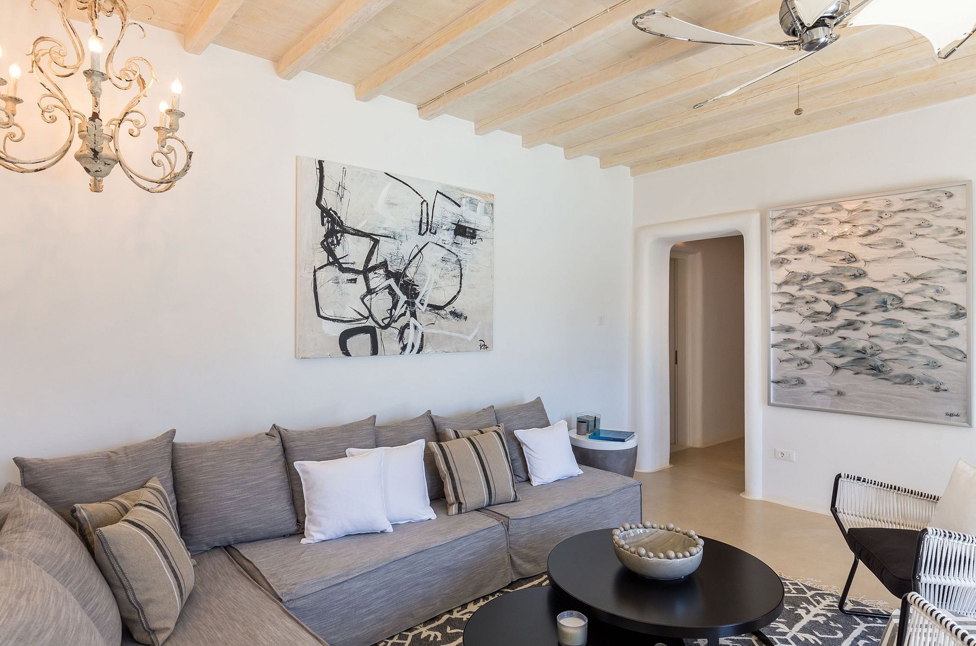 Villa is a lovely beachfront property of 5 en suite bedrooms right on the golden sandy beach of Ftelia, with a unique sea view. Direct beach access only one minute walk from the property. The interior is divided into two levels and combines tasteful decor with traditional architecture. The exterior comprises a lounge and a dining area, a pool with a direct sea view, parking space for several cars, and a pathway that leads straight to the water.