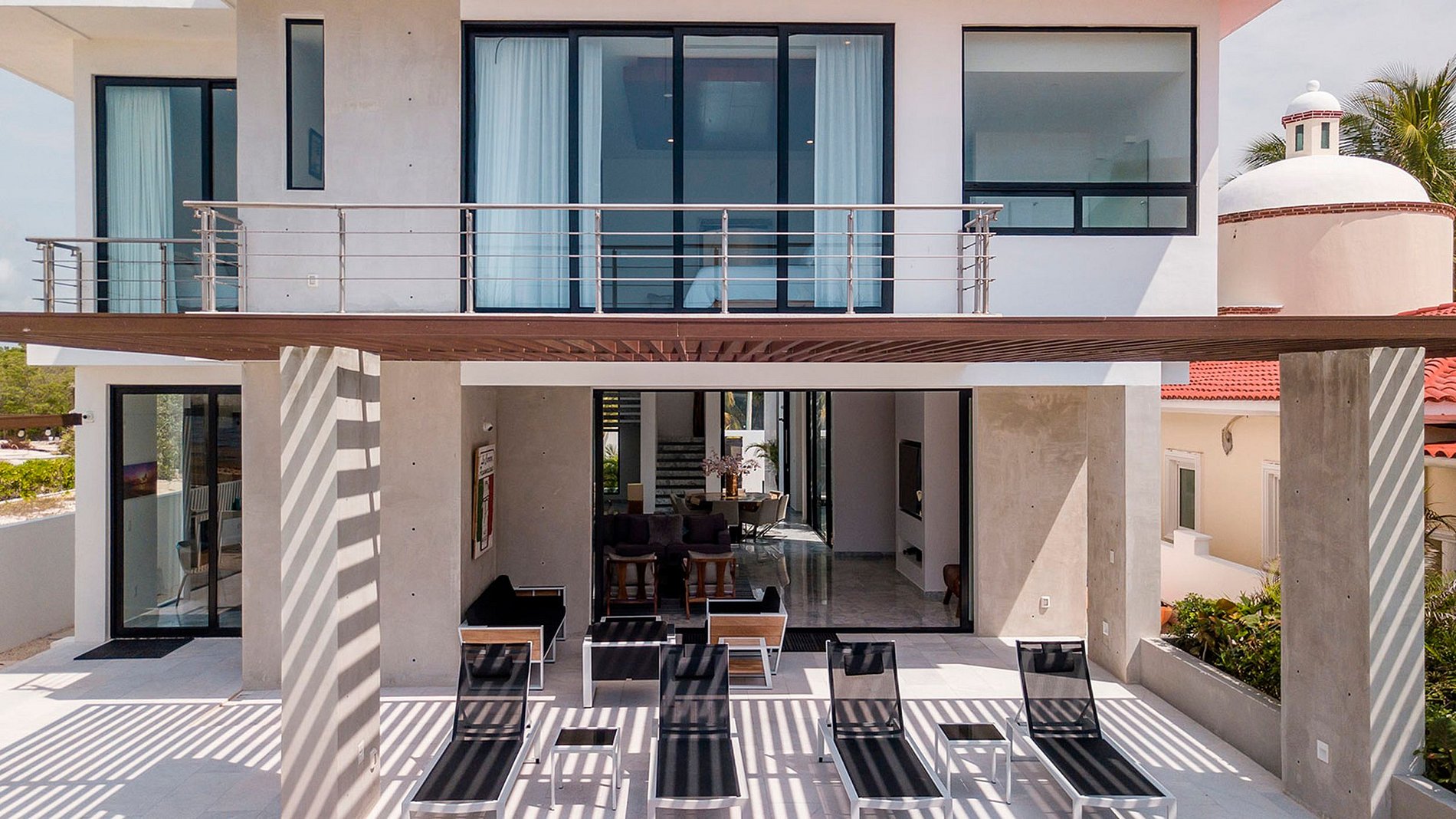 Indulge in aquatic luxuries at this chic beachfront villa nestled in Playa Paraiso within the vibrant Riviera Maya.
