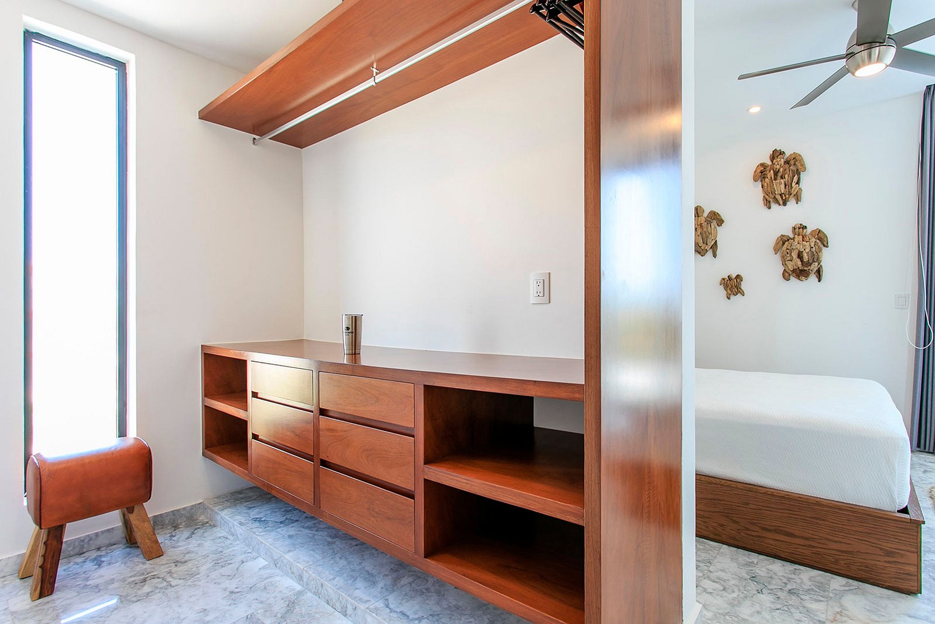 Relish the indoors with modern comforts including air conditioning and contemporary designer furnishings. The sleek kitchen is a haven for culinary inspiration. Source fresh seafood from local markets for a delightful barbecue night on the terrace, perfect for crafting mouthwatering tacos. Transform the formal dining area into an alfresco oasis for eight with swift door openings. Cap off the evening with terrace lounging and handcrafted cocktails while soaking in the captivating ocean vista.
