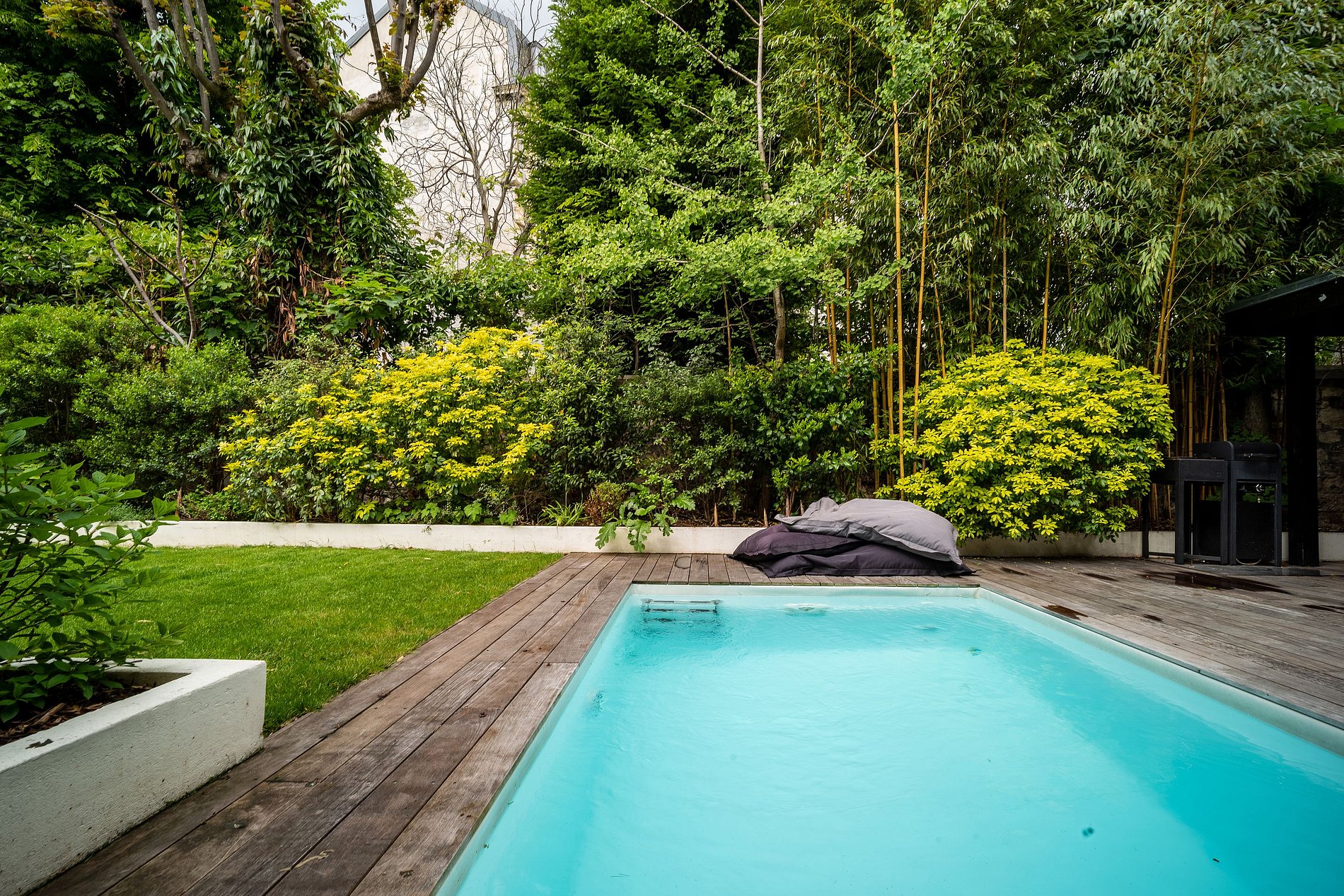 Up to 10 people can be comfortably accommodated in the 5 bedrooms, all with views onto the peaceful garden. Two additional studios with private bathrooms and kitchens are also available in the garden house. The house is organized on 4 levels with all up-to-date amenities and WiFi.