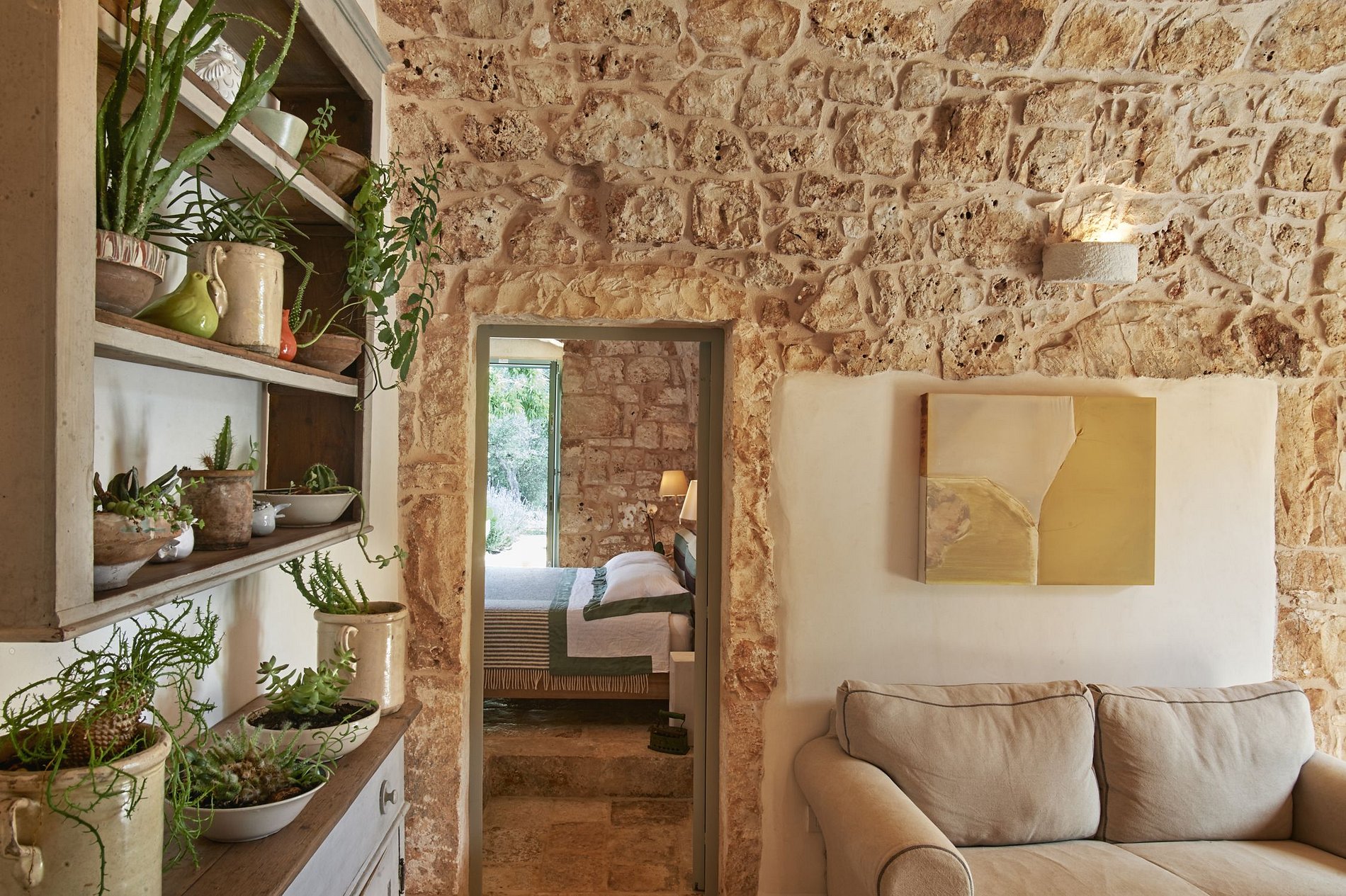 The collection consists of three separate buildings, conceived as three unique villas. The concept is to unite them together through the common areas: the large kitchen and the living room, the pool and its nearby areas, the bbq area with a wood-burning oven. They are all welcoming environments where family and friends have the opportunity to spend a wonderful holiday in complete privacy.In total there are 7 rooms as well as a sleeping area in the living room, 2 kitchens, 3 living rooms, one of which is very large and various outdoor spaces that revolve around the large pool. More than a holiday: an unforgettable experience in Puglia prioritizing privacy, conviviality, culture, exclusivity.