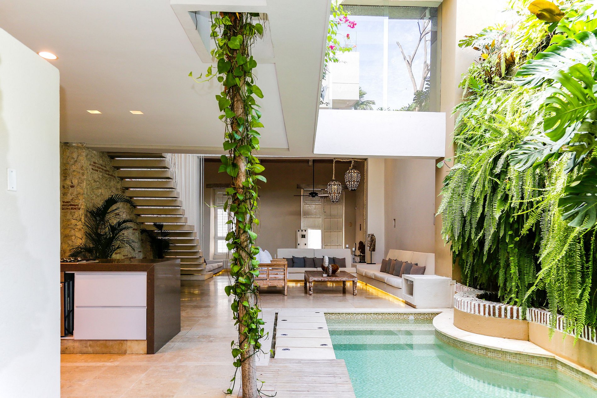 Stunning restored 3-bedroom house with pool, jacuzzi and rooftop located near one of the most pleasant squares in the Historic Center of Cartagena.