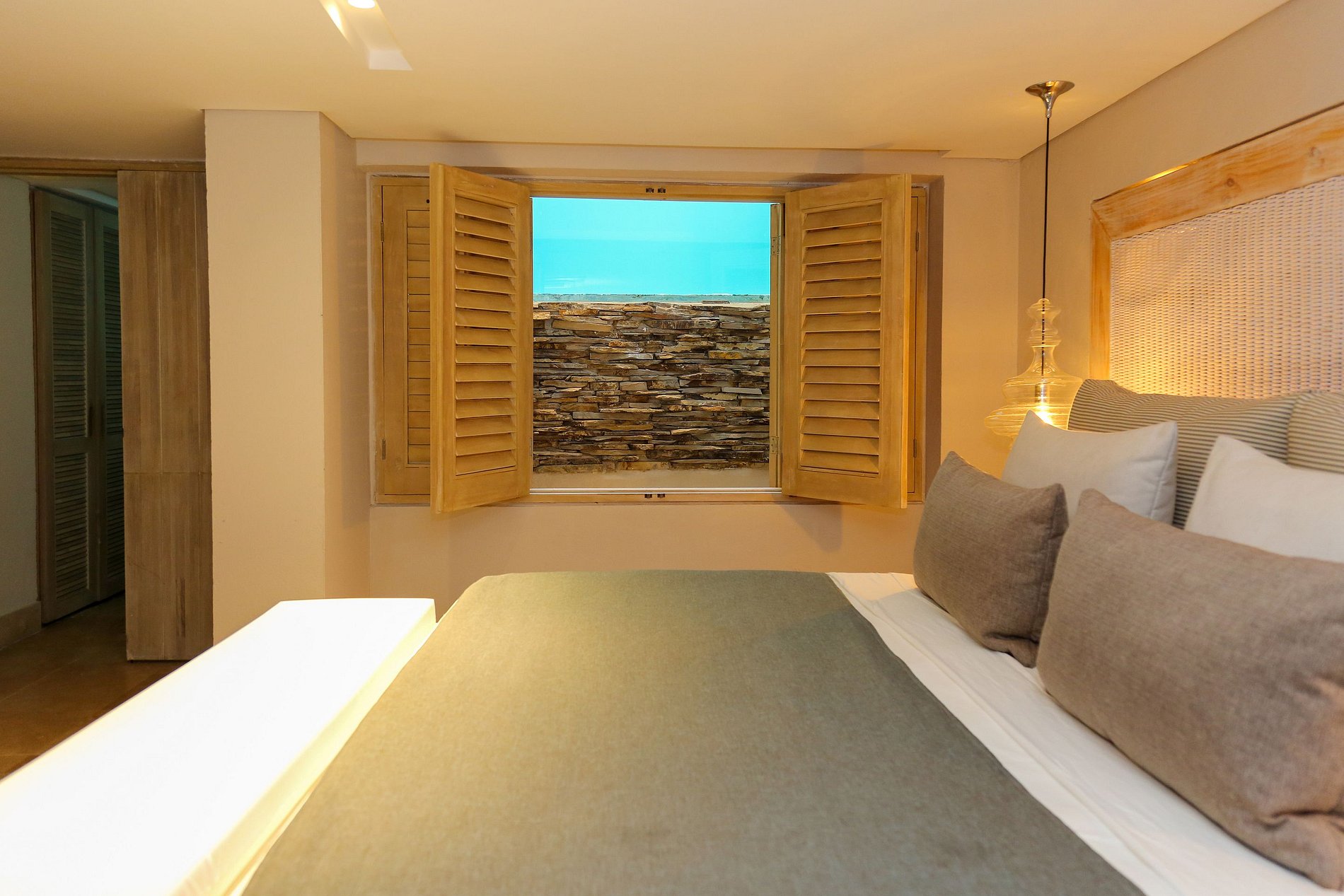 The second level of the house can be accessed by modern floating stairs in stone, followed by a beautiful path and flowerpots leading to the master suite equipped with a walking closet, television, balcony, and a magnificent view towards the interior of the house. On the third level is a spectacular viewpoint with a BBQ, jacuzzi, and view towards Cartagena's old city.