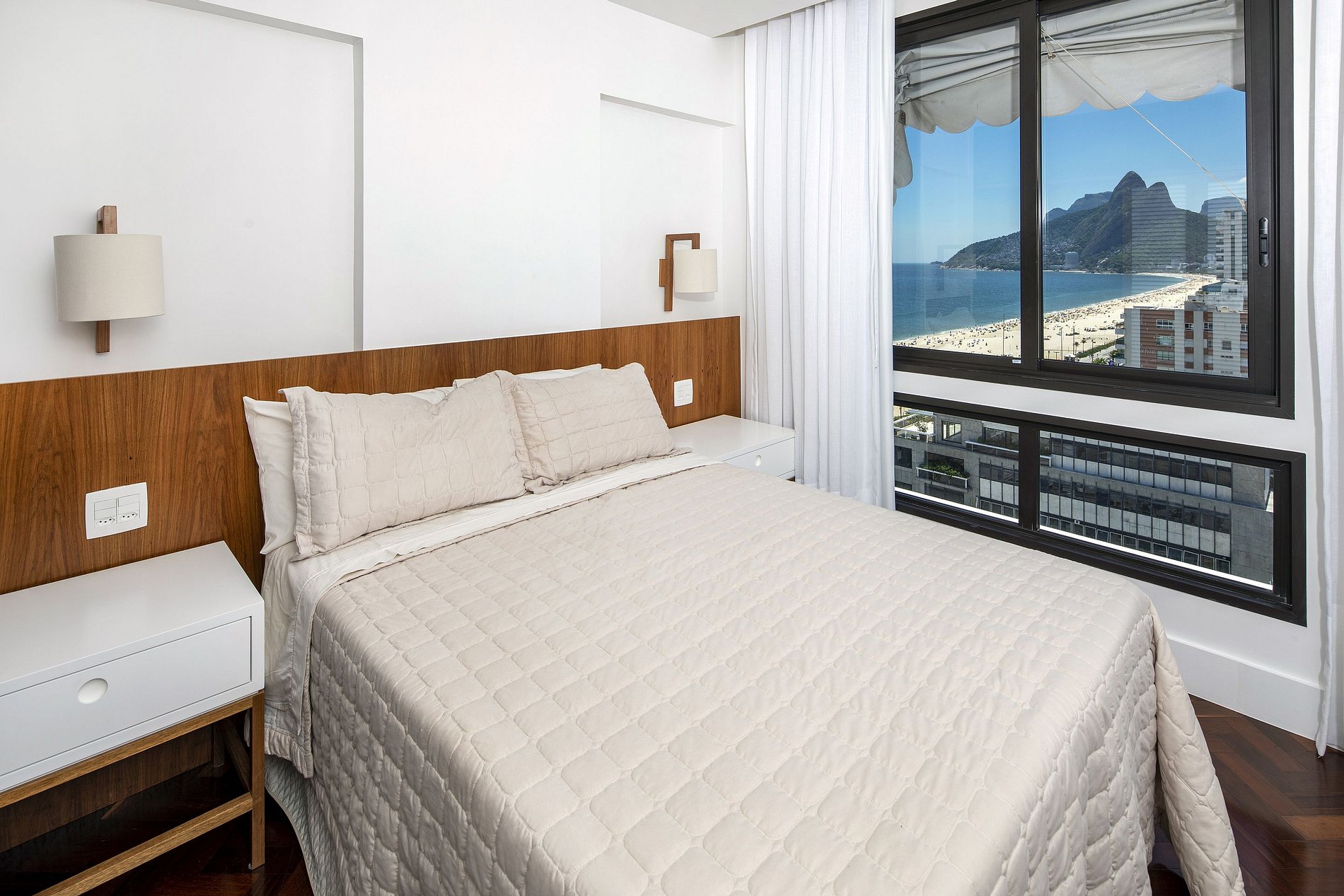 This place has air conditioning in every room, a modern fully equipped kitchen and a laundry area. However, its highlight is undoubtedly its second-floor rooftop area with swimming pool, barbecue and views of the sea. This area has everything you need to enjoy the sun of Rio de Janeiro with class and style.