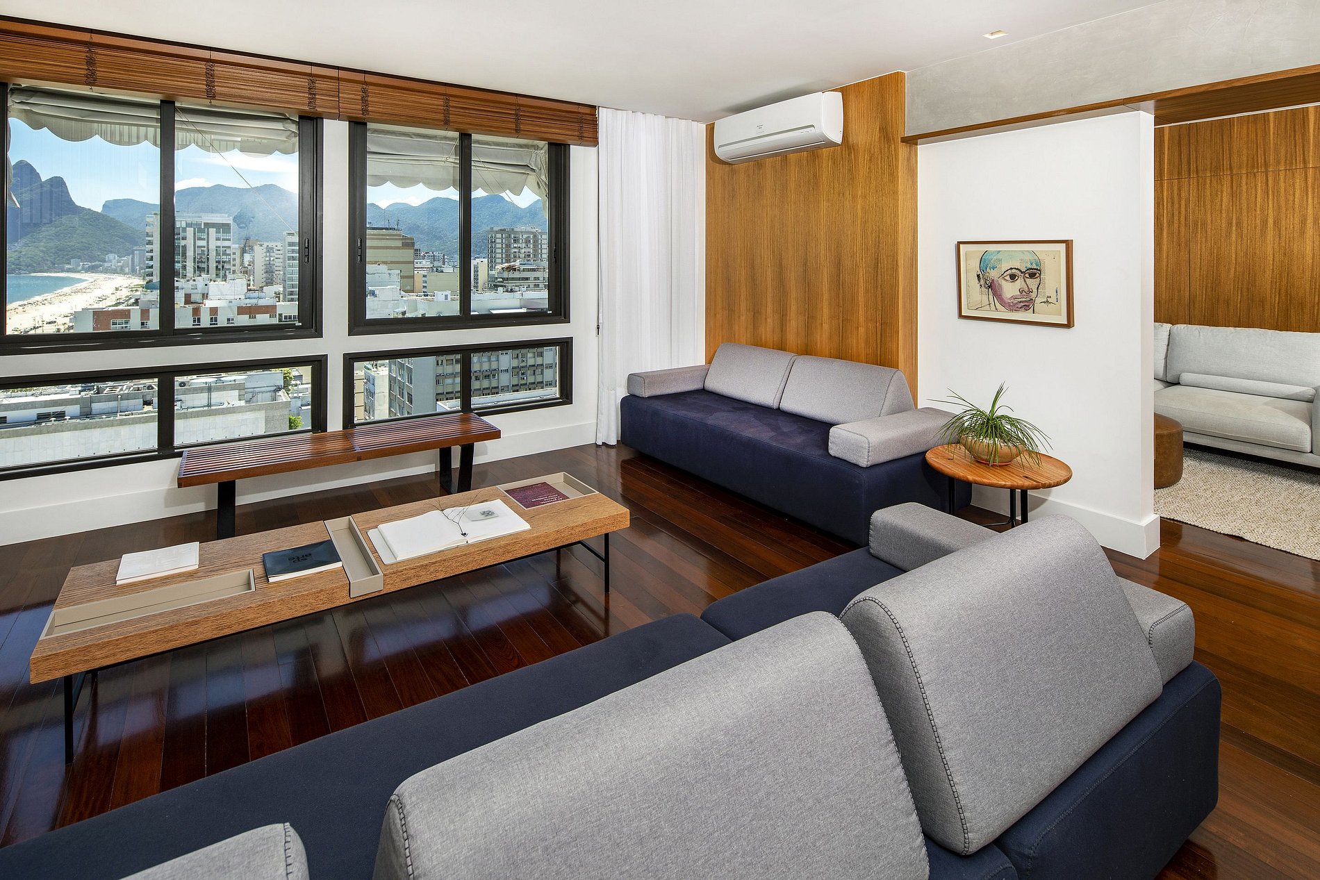 This apartment comfortably accommodates up to 5 adults in its renovated and well decorated bedrooms. Its beautiful open-plan living room is totally integrated with a modern dining area - the perfect place to gather with friends, enjoying the nice view of Ipanema Beach and Dois Irmaos Hill. The living room also has a small TV area and a balcony with a hammock for you to relax.