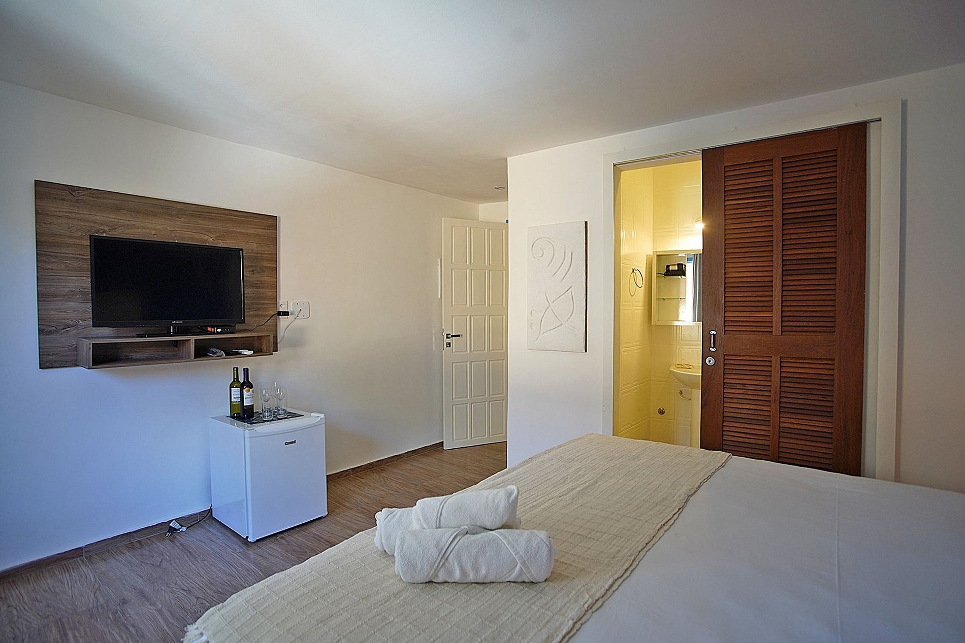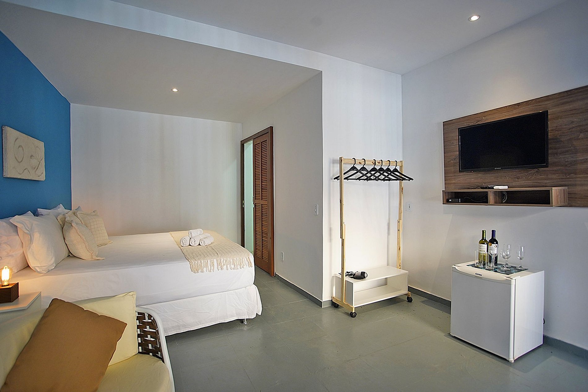 Upon entering the house, the first view you have is the comfortable waiting and reception area with an incredible view of the sea in Búzios. Each of the 10 suites are air-conditioned with queen-size beds, have a minibar, cable TV, shared balcony and a simplistic decor that gives the rooms a beautiful coastal charm. Of the 10 suites, the house has on the top floor, two spacious master suites with comfortable sofas and a beautiful panoramic view of the Búzios sea.