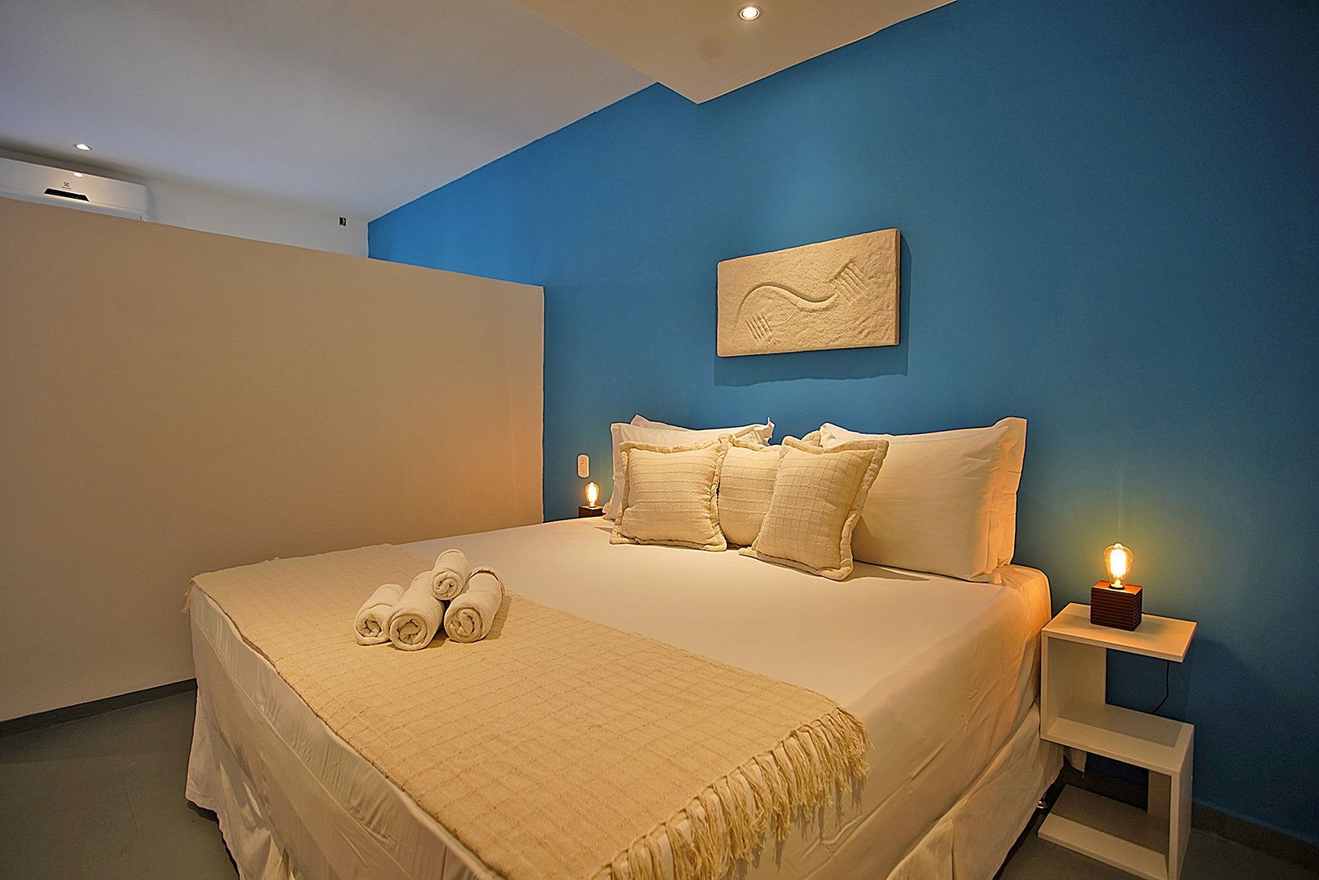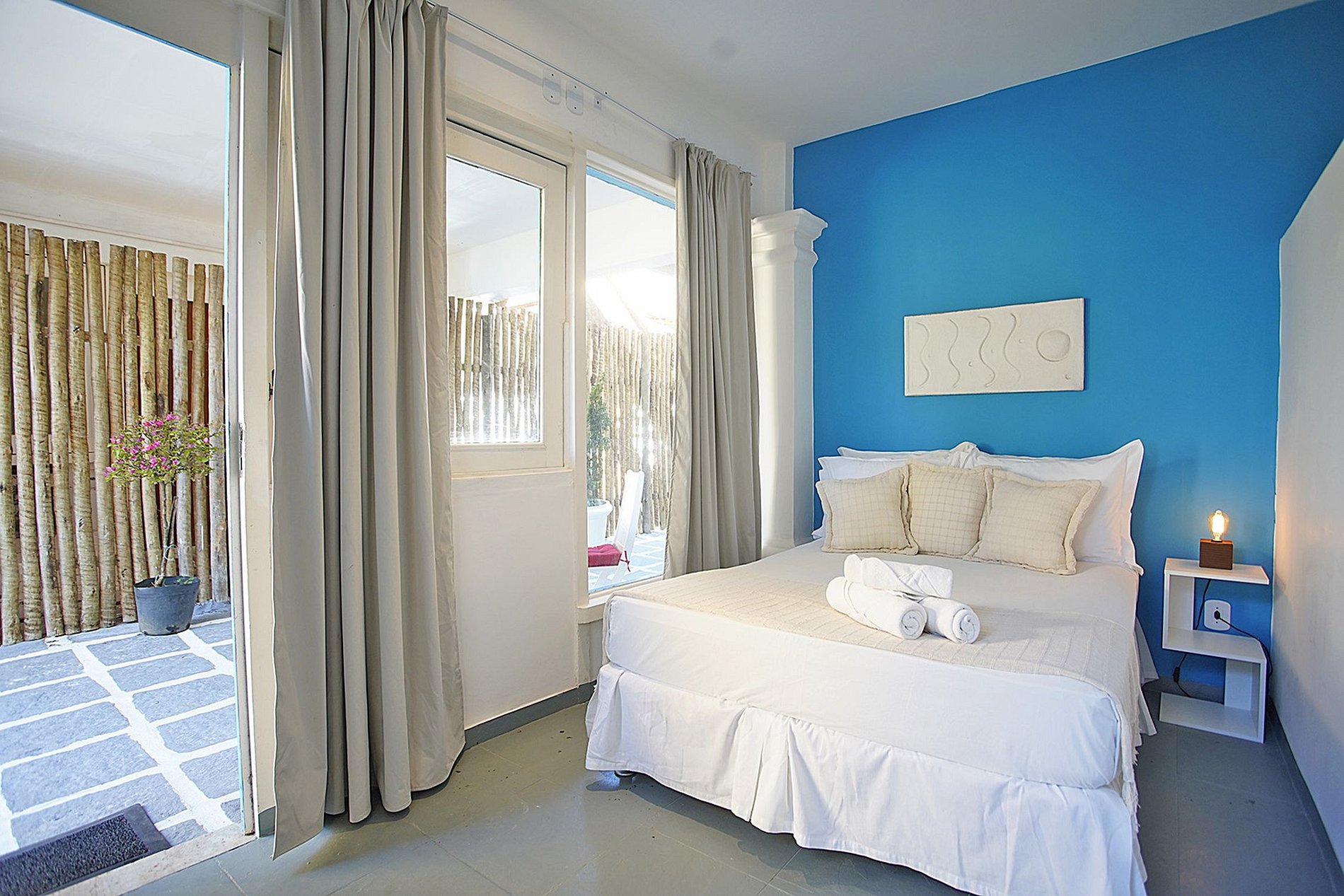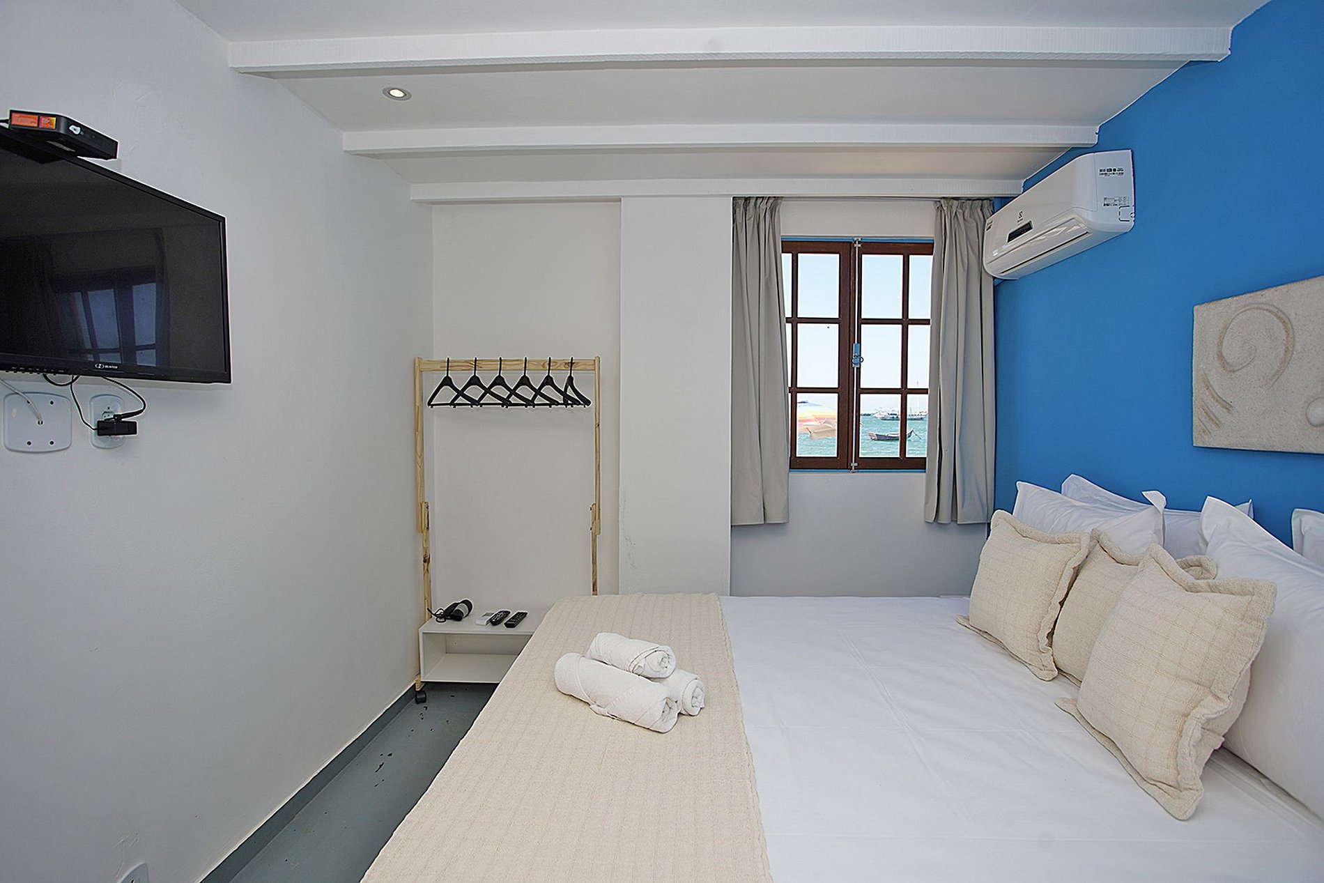 Upon entering the house, the first view you have is the comfortable waiting and reception area with an incredible view of the sea in Búzios. Each of the 10 suites are air-conditioned with queen-size beds, have a minibar, cable TV, shared balcony and a simplistic decor that gives the rooms a beautiful coastal charm. Of the 10 suites, the house has on the top floor, two spacious master suites with comfortable sofas and a beautiful panoramic view of the Búzios sea.